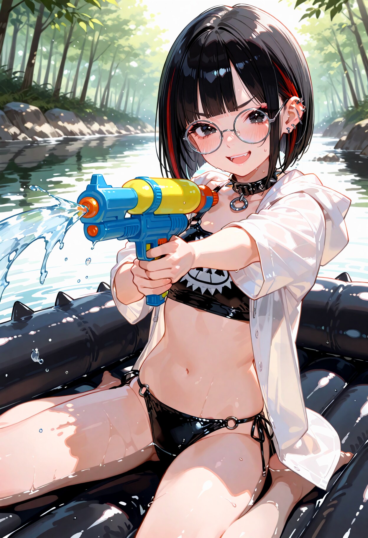 jacket partially removed, heart in eye, burnt clothes, holding fishing rod, kanji, doujin cover, pentagram, tape gag, adjusting headwear, red socks, friends, cloud print, coke-bottle glasses, oral invitation, competition school swimsuit, barbell piercing, gradient legwear, prisoner, blood on breasts, wind chime, carrying over shoulder, tape measure, flaming weapon