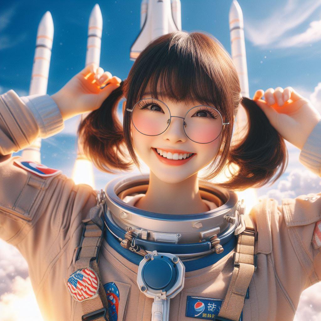 打ち上げの見学になぜか宇宙服を着てきたのびかちゃんです