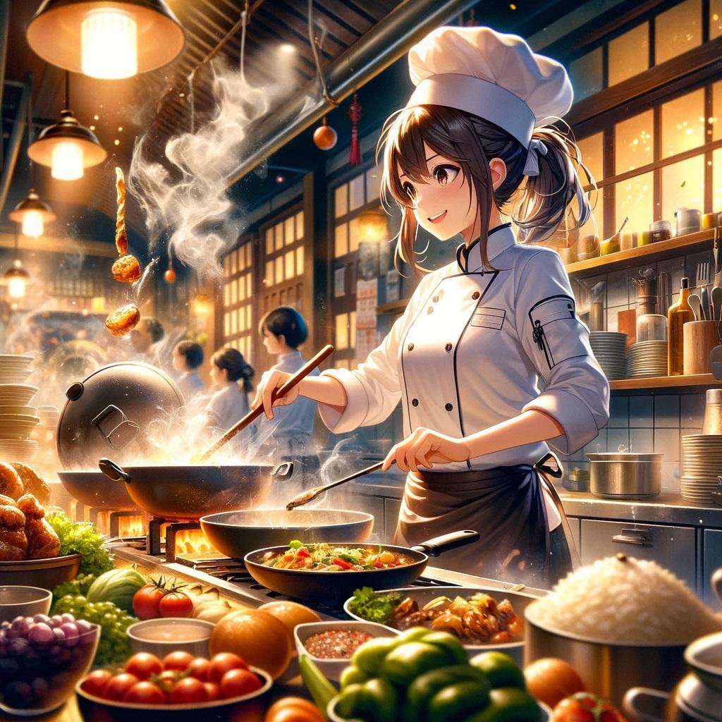 厨房で調理