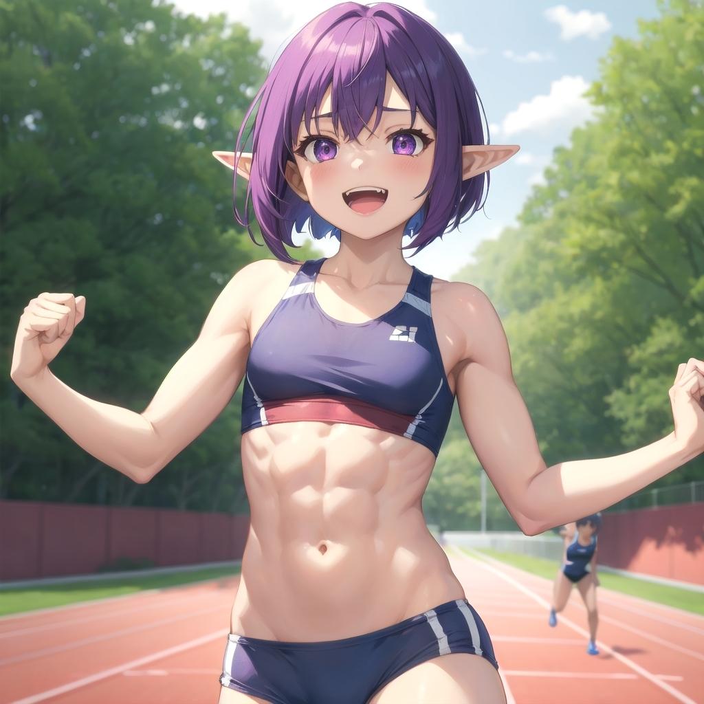 エルフアキラは森の中の陸上競技場で自主トレをしているぞ!