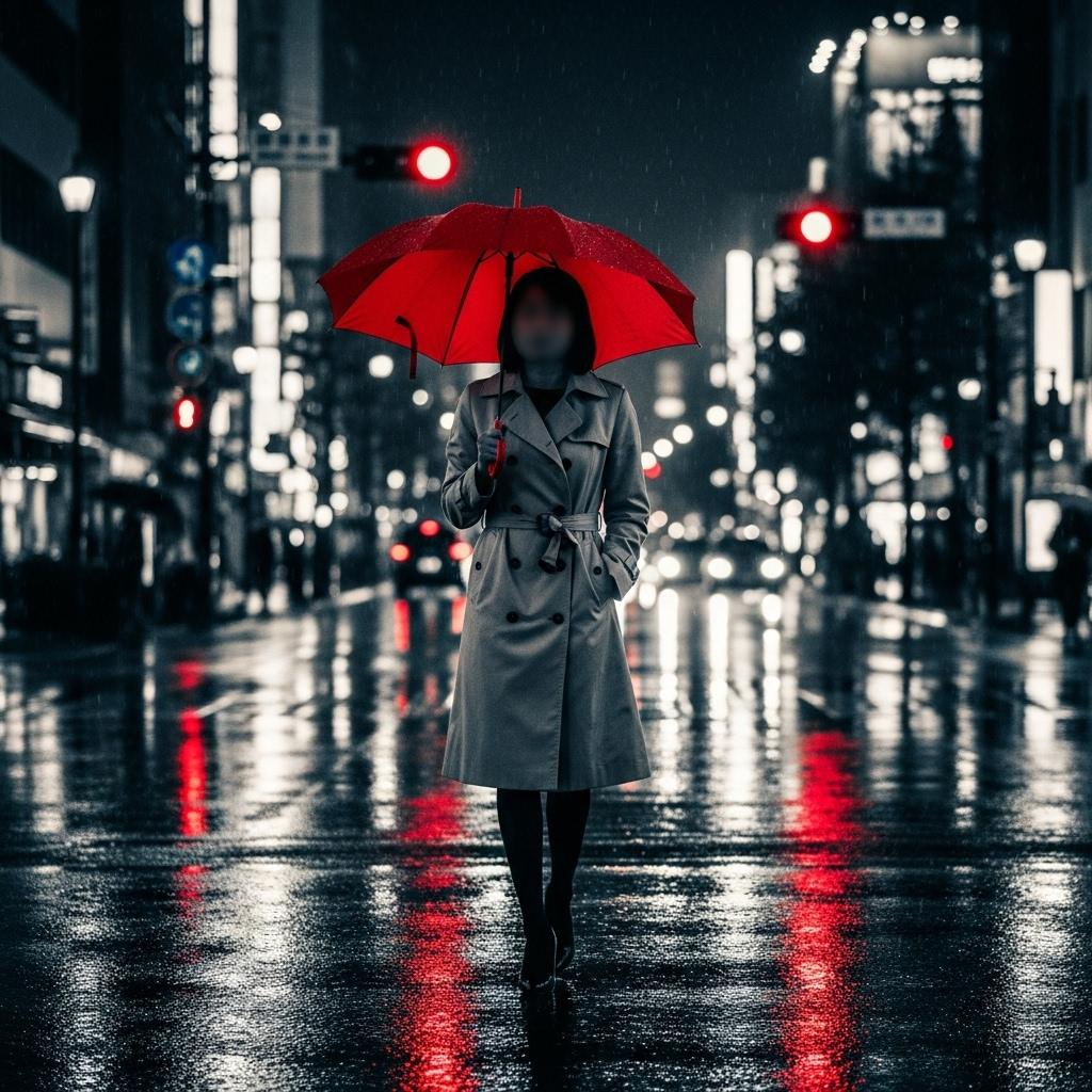 雨の夜(赤だけの世界)