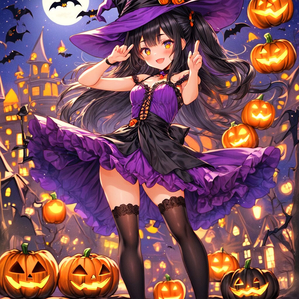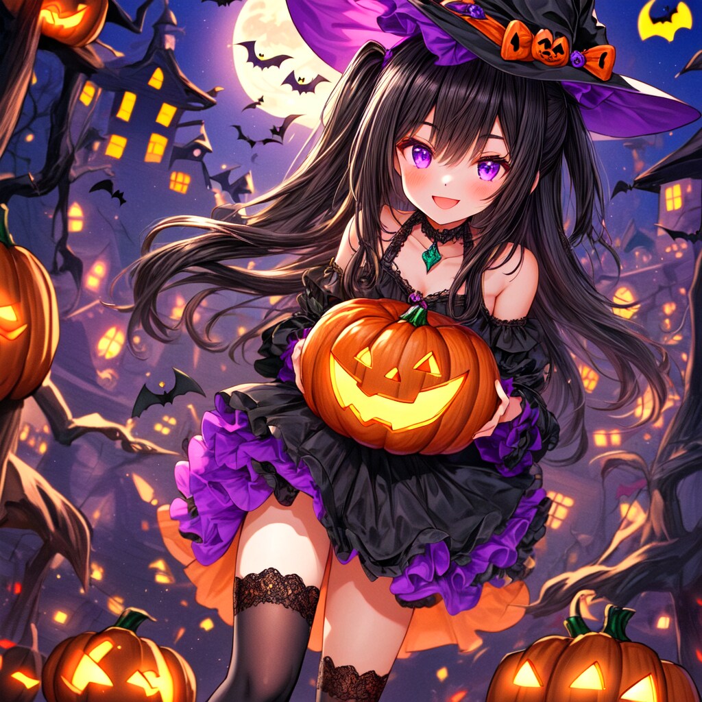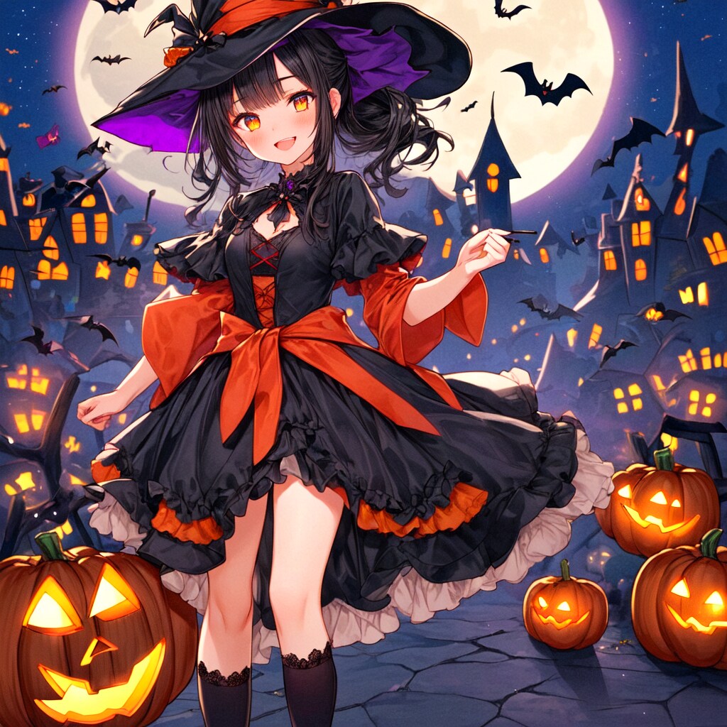 ハロウィン好きなので張り切って生成してみましたが、ジャック・オー・ランタンを持たせるというプロンプトを入れたため、手の成功率が低めになって、頭を抱えました…!SDモデル難しい…。