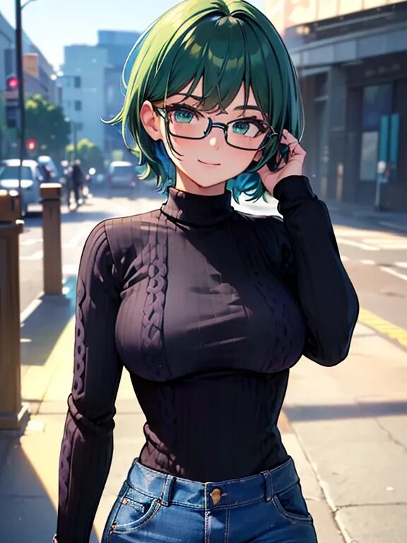 黒縦セタ眼鏡お姉さん