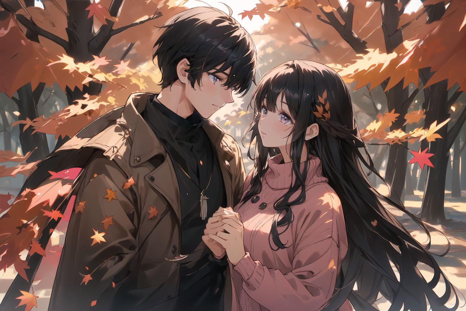 風が再び吹き、紅葉が空高く舞い上がった。その瞬間、世界は二人を祝福するかのように静かに光を放ち、全ての時間がこの瞬間のために存在していたかのように感じられた。彼らの魂は再び一つに繋がり、数千年の時を超えた愛が成就したのだ。