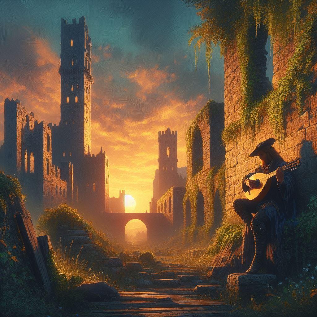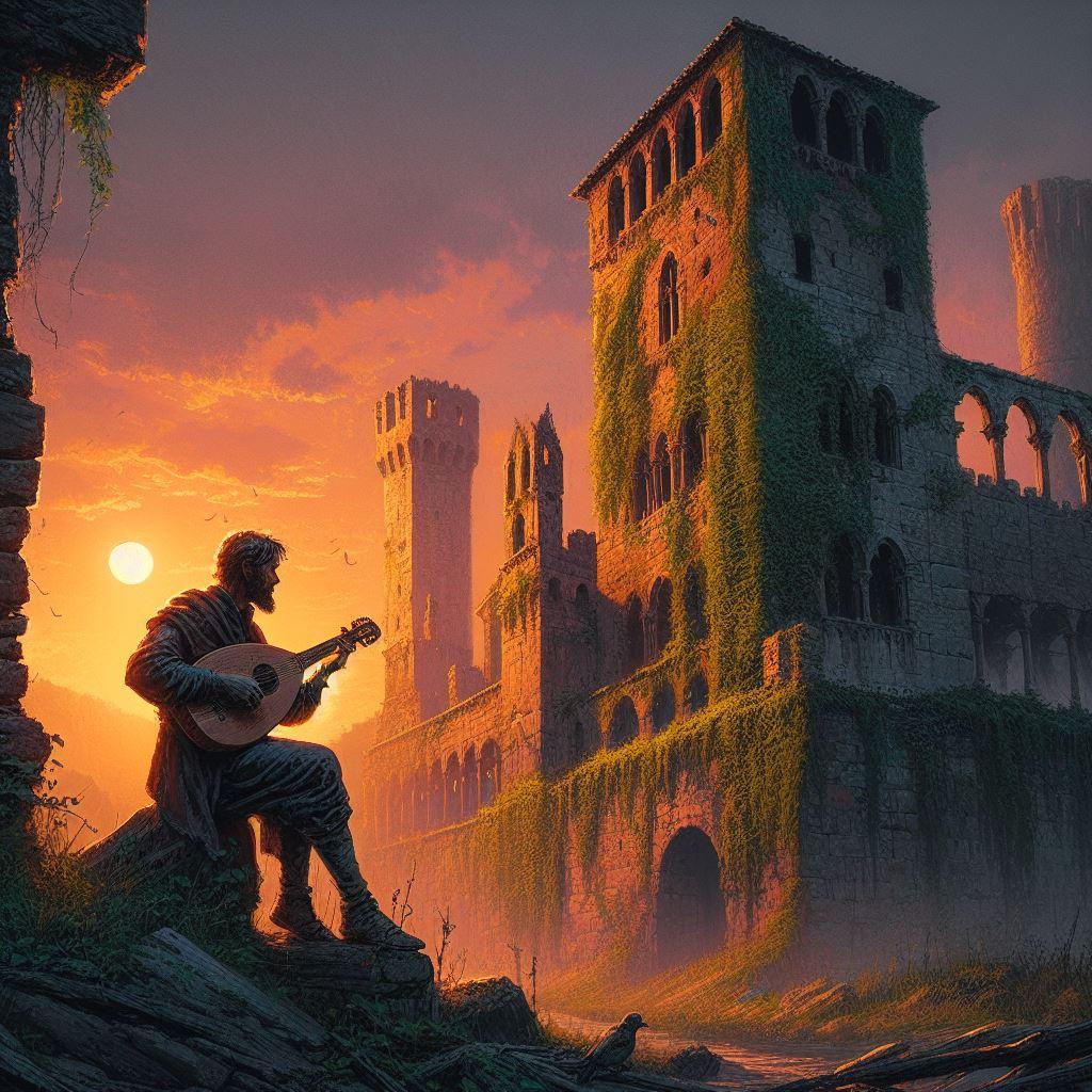 戦乱の中で打ち捨てられ廃墟となった古い城で、リュートを弾きながら吟遊詩人が歌う。