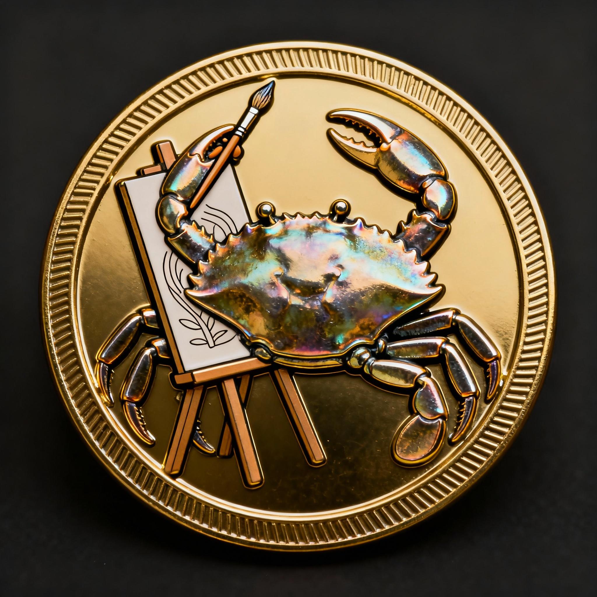 2枚目:カニと絵画をモチーフにしたエンブレム
