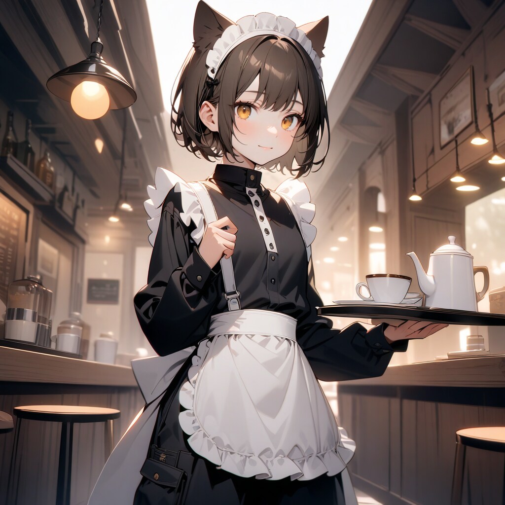 飲み物を運んでくれる喫茶店で働く猫娘