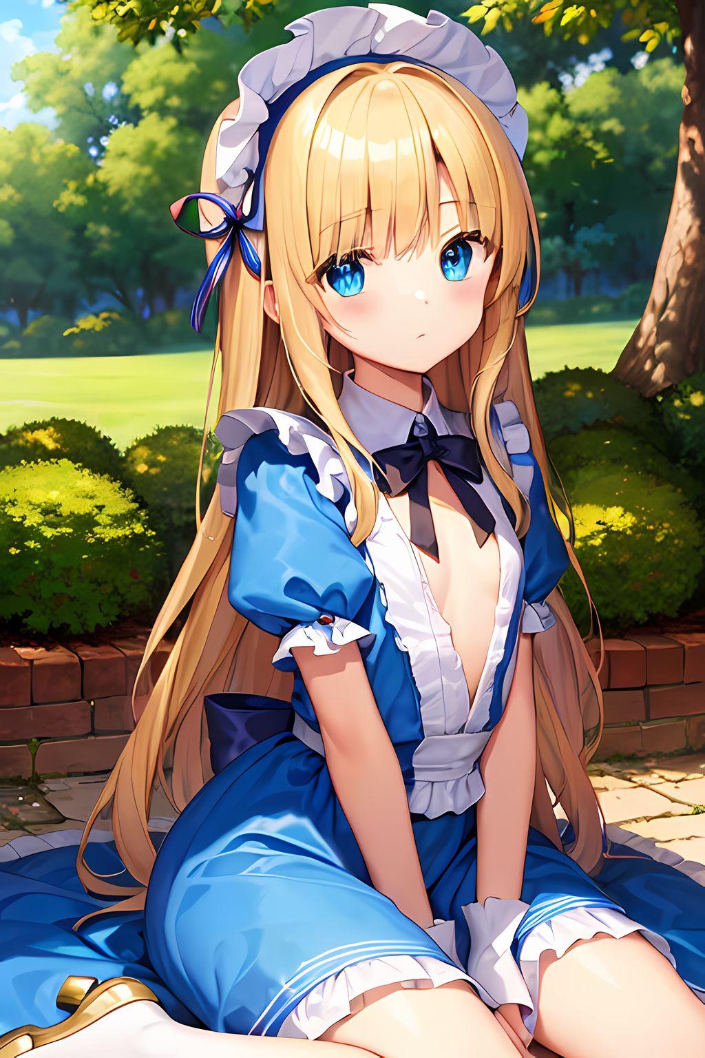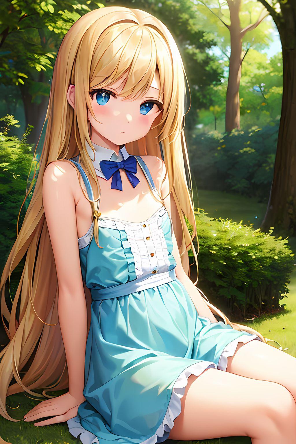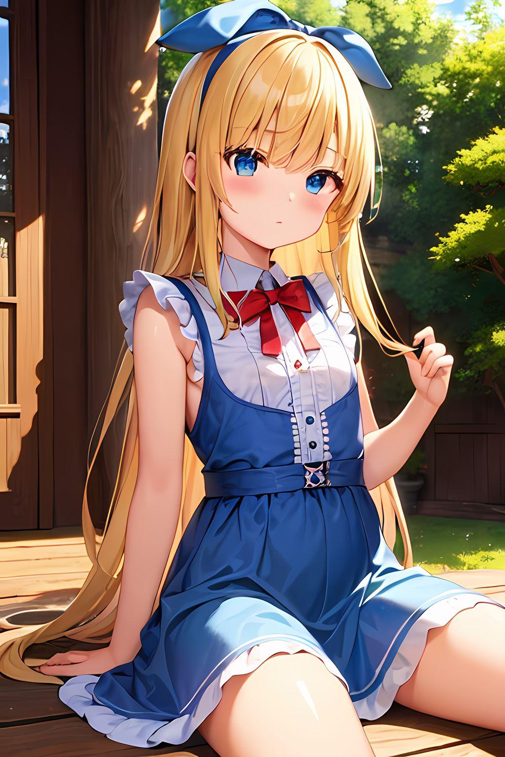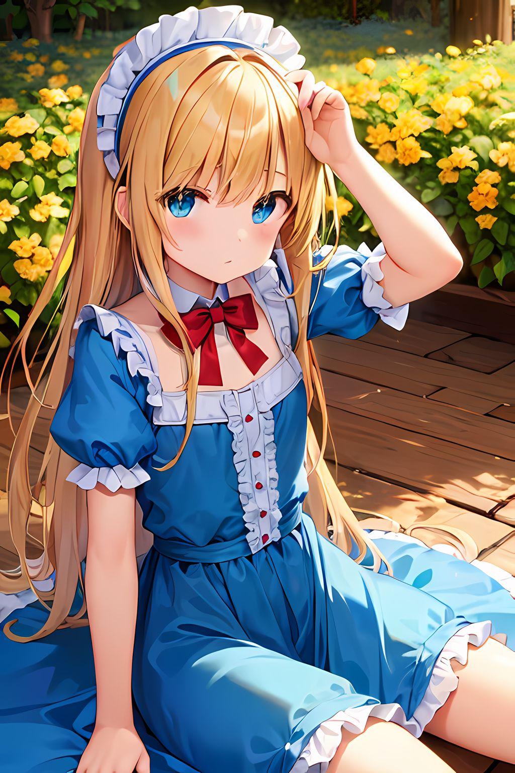 「アリスの不思議な国」から金髪碧眼青系ドレスとステレオタイプの「アリス」