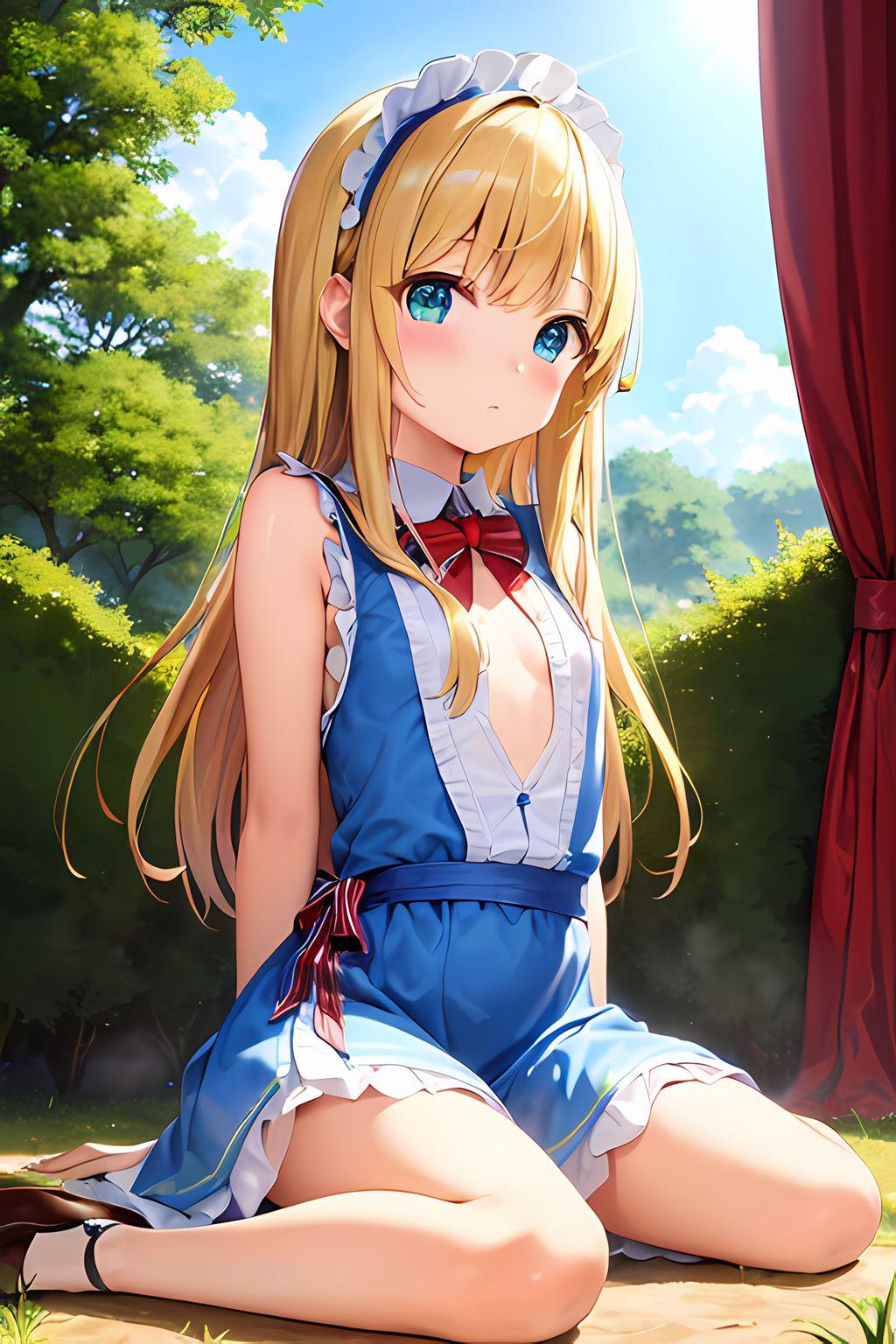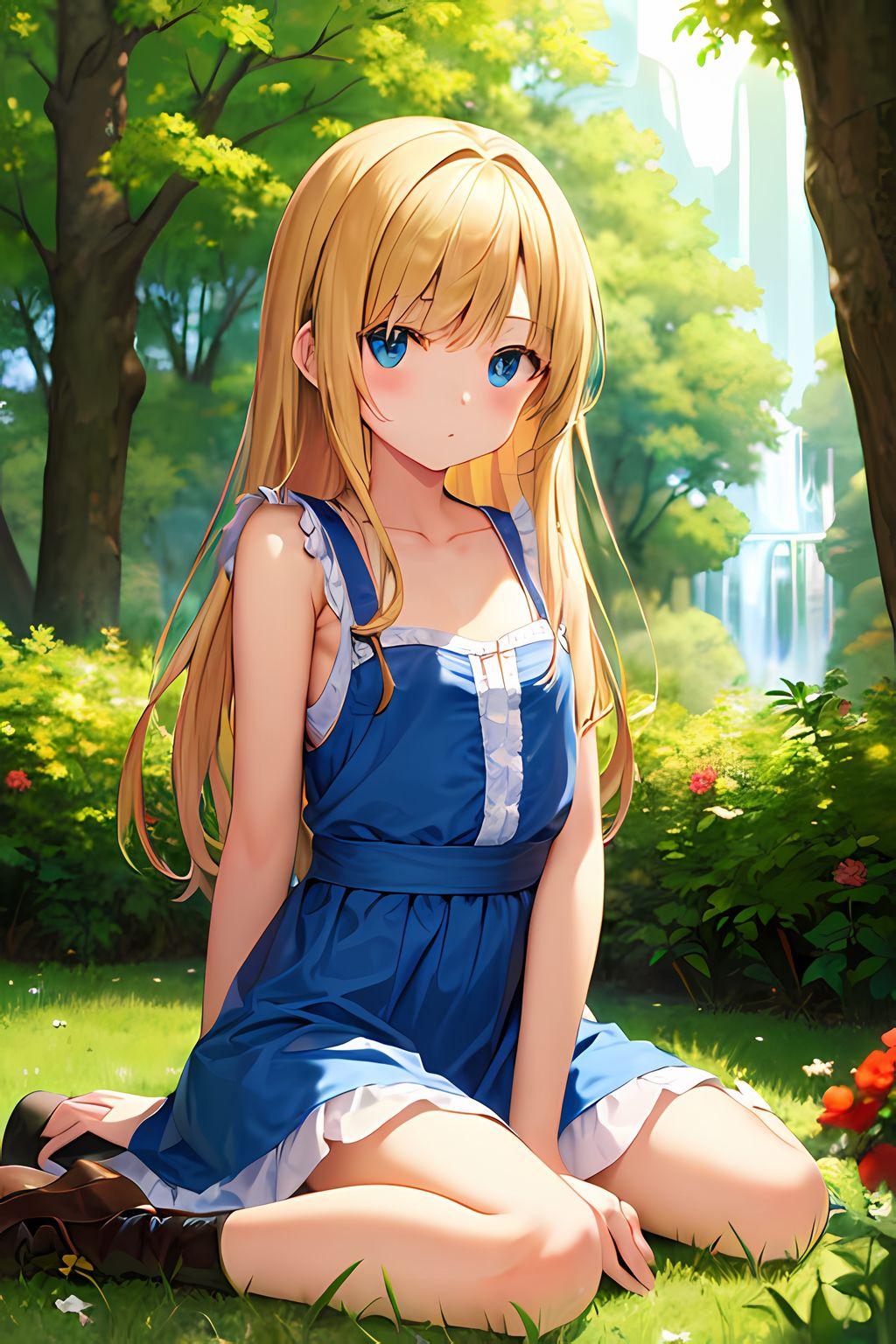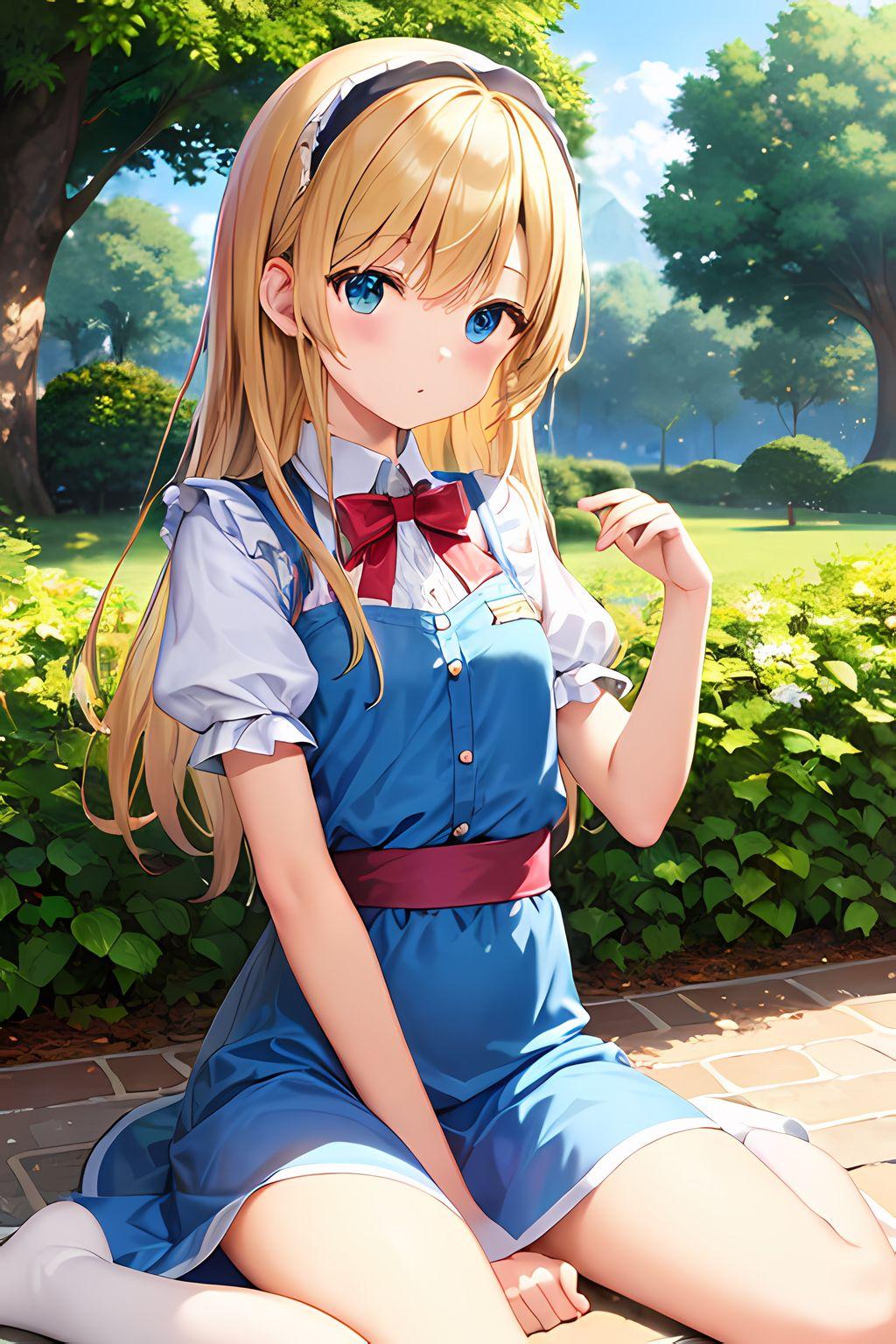 「アリスの不思議な国」から金髪碧眼青系ドレスとステレオタイプの「アリス」
