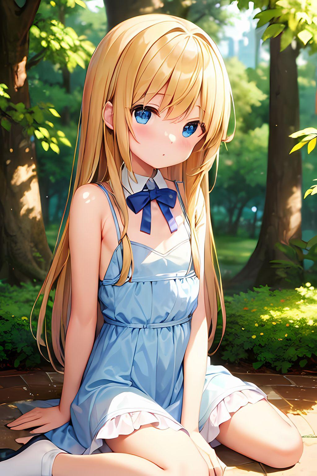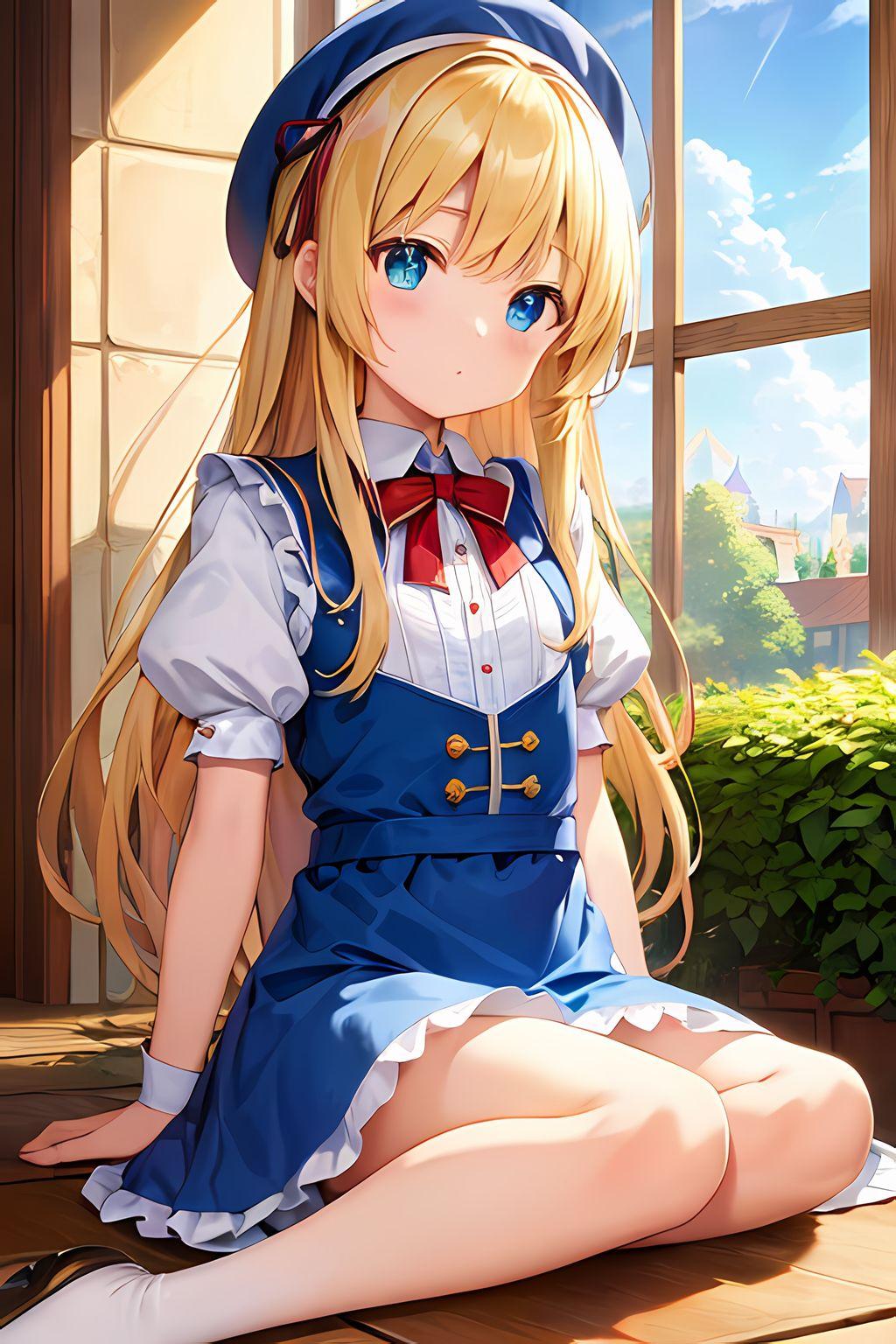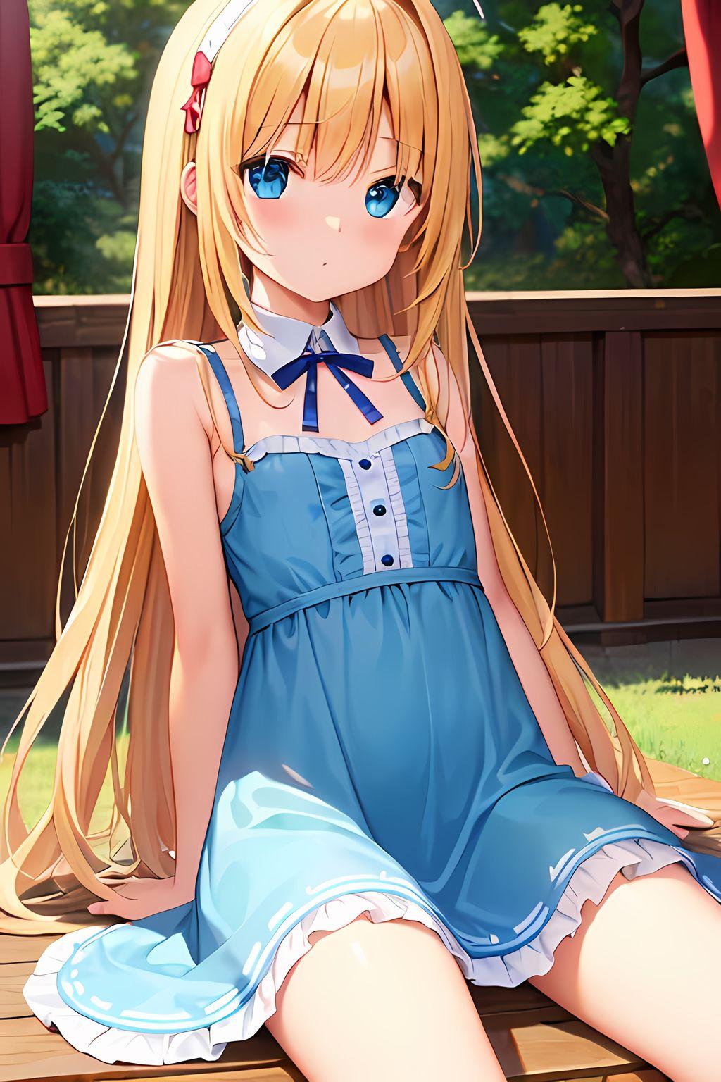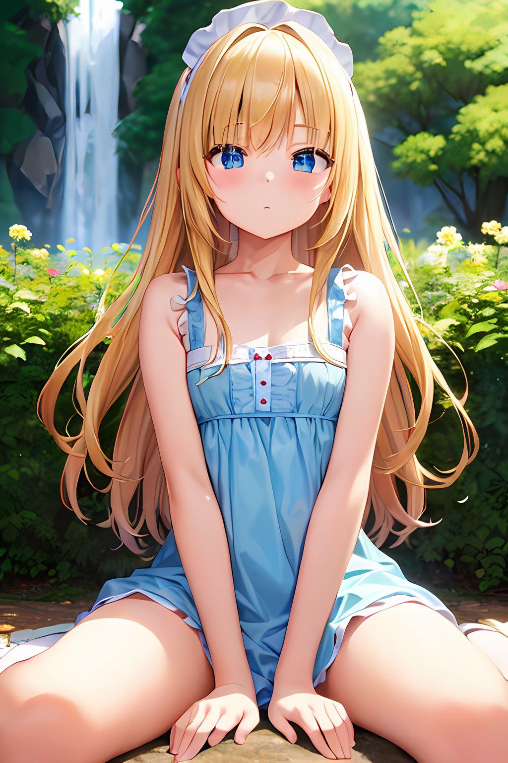 「アリスの不思議な国」から金髪碧眼青系ドレスとステレオタイプの「アリス」