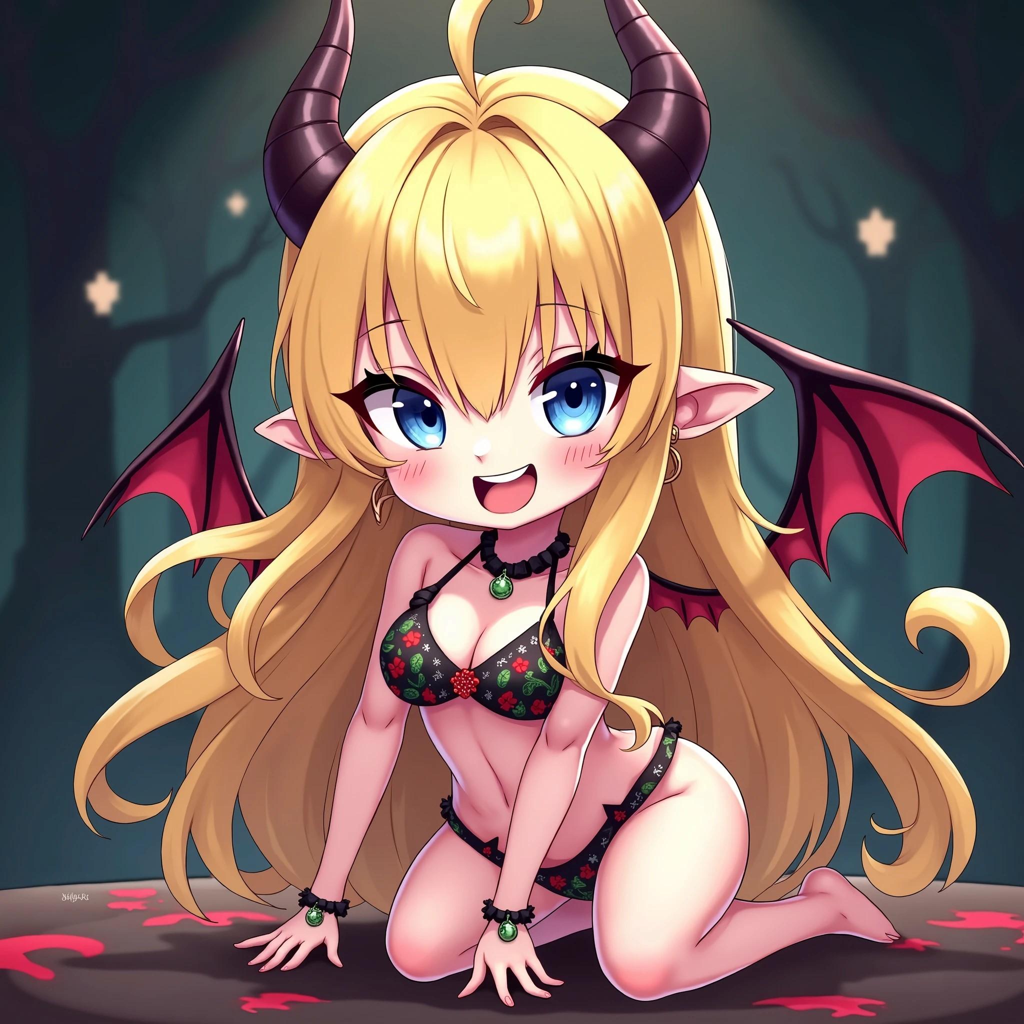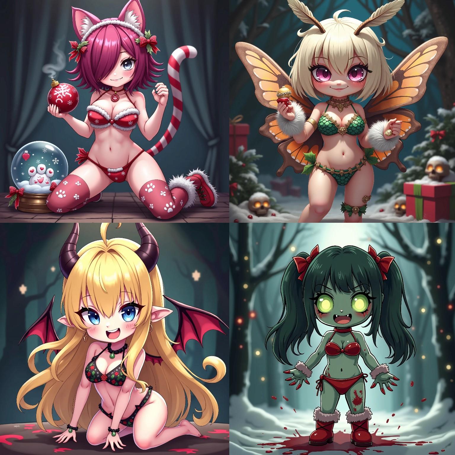 Christmas pattern demon bikini,goat horns,pointy ears,wing,