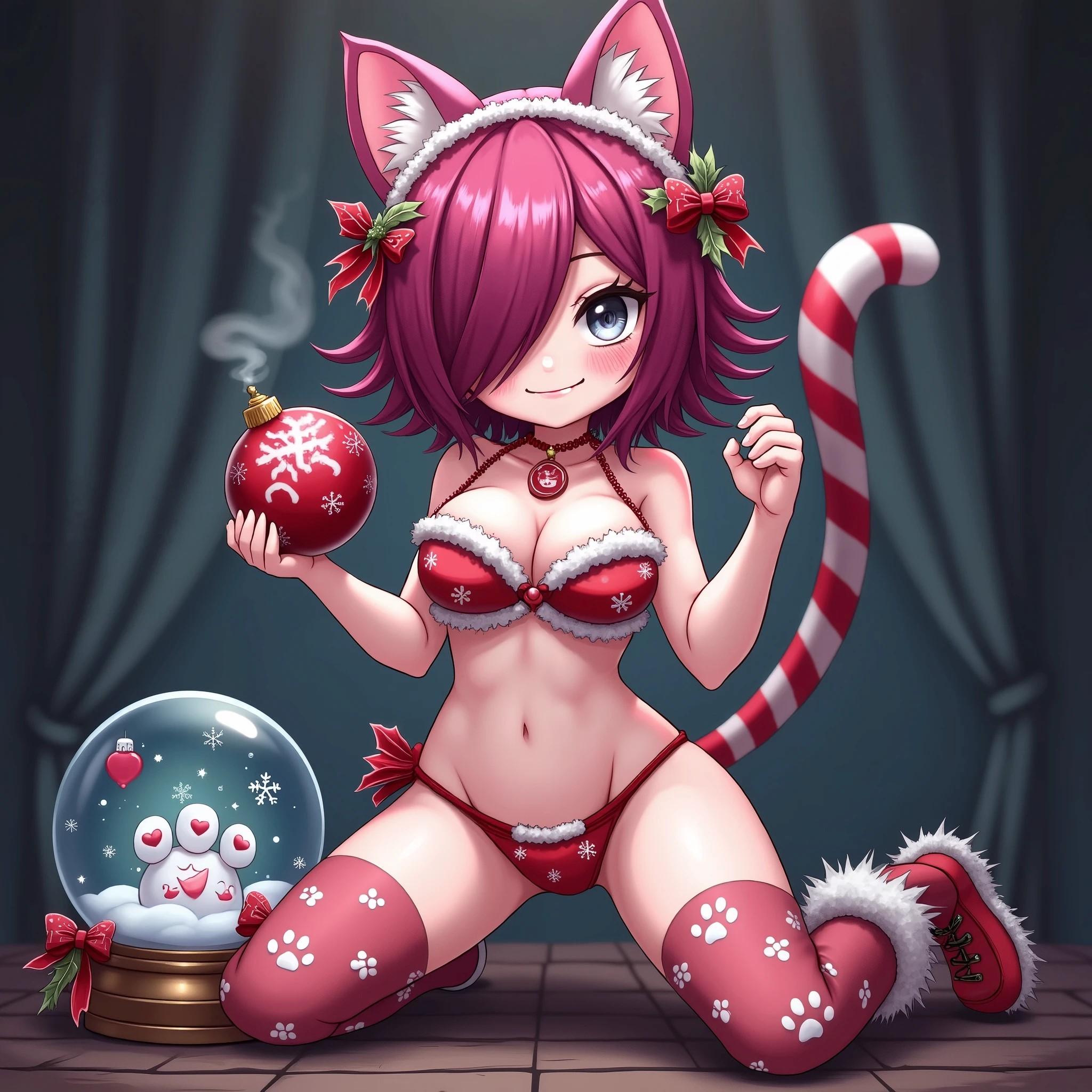 Christmas Cat pattern bandeau bikini, Cat Ears,spines choker,Cat's Tail,paw globe,