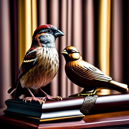 スズメと彫刻スズメ