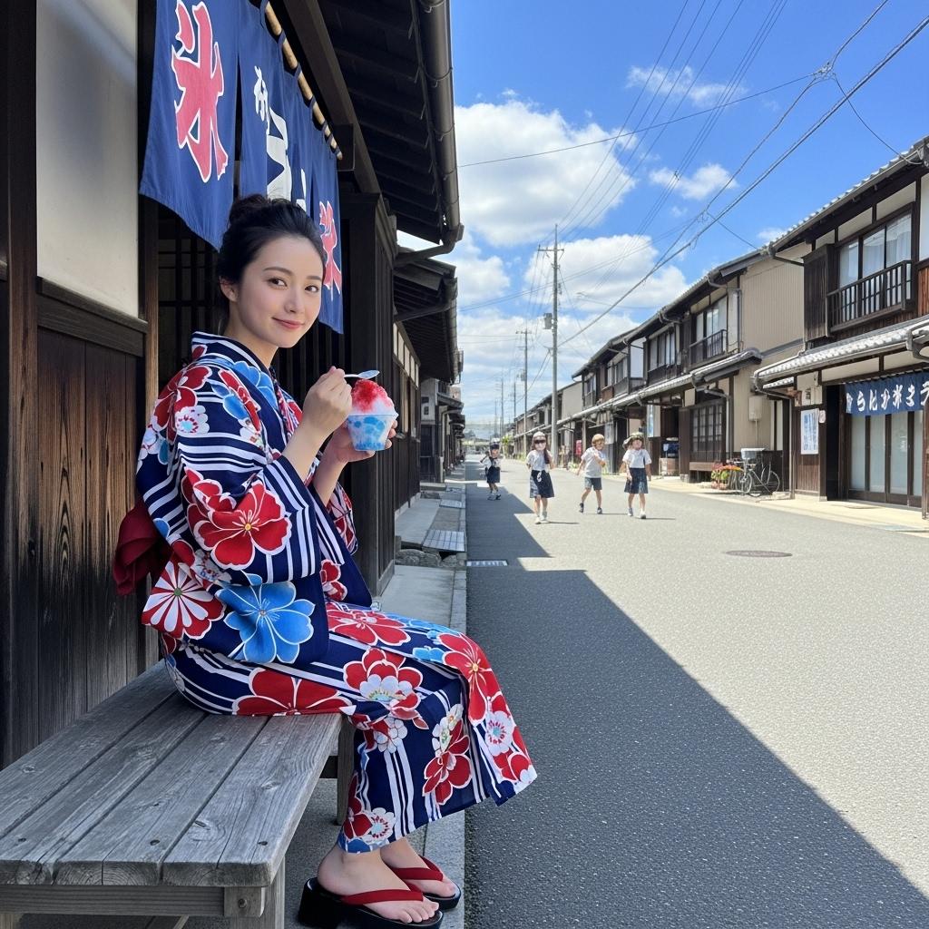 店先でかき氷