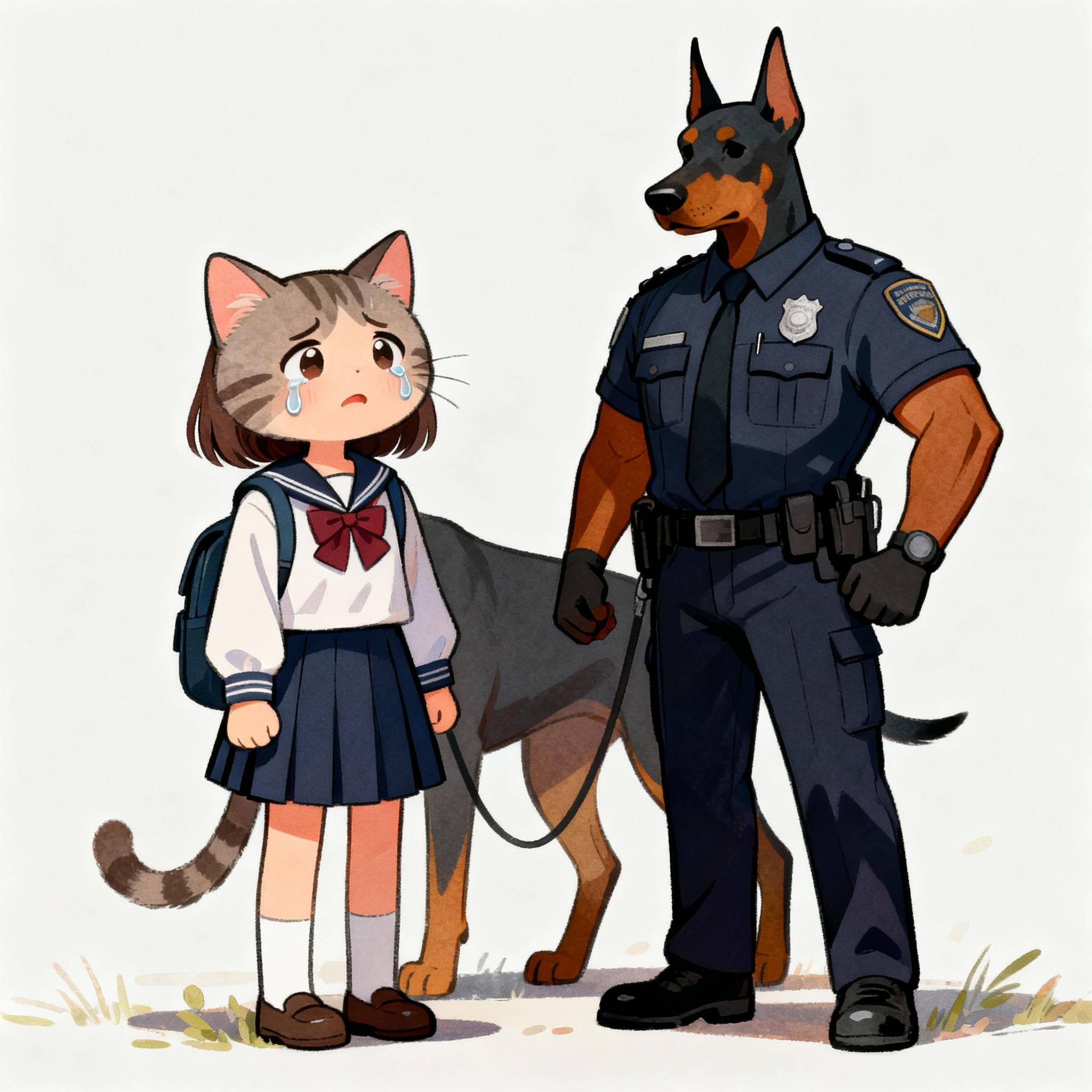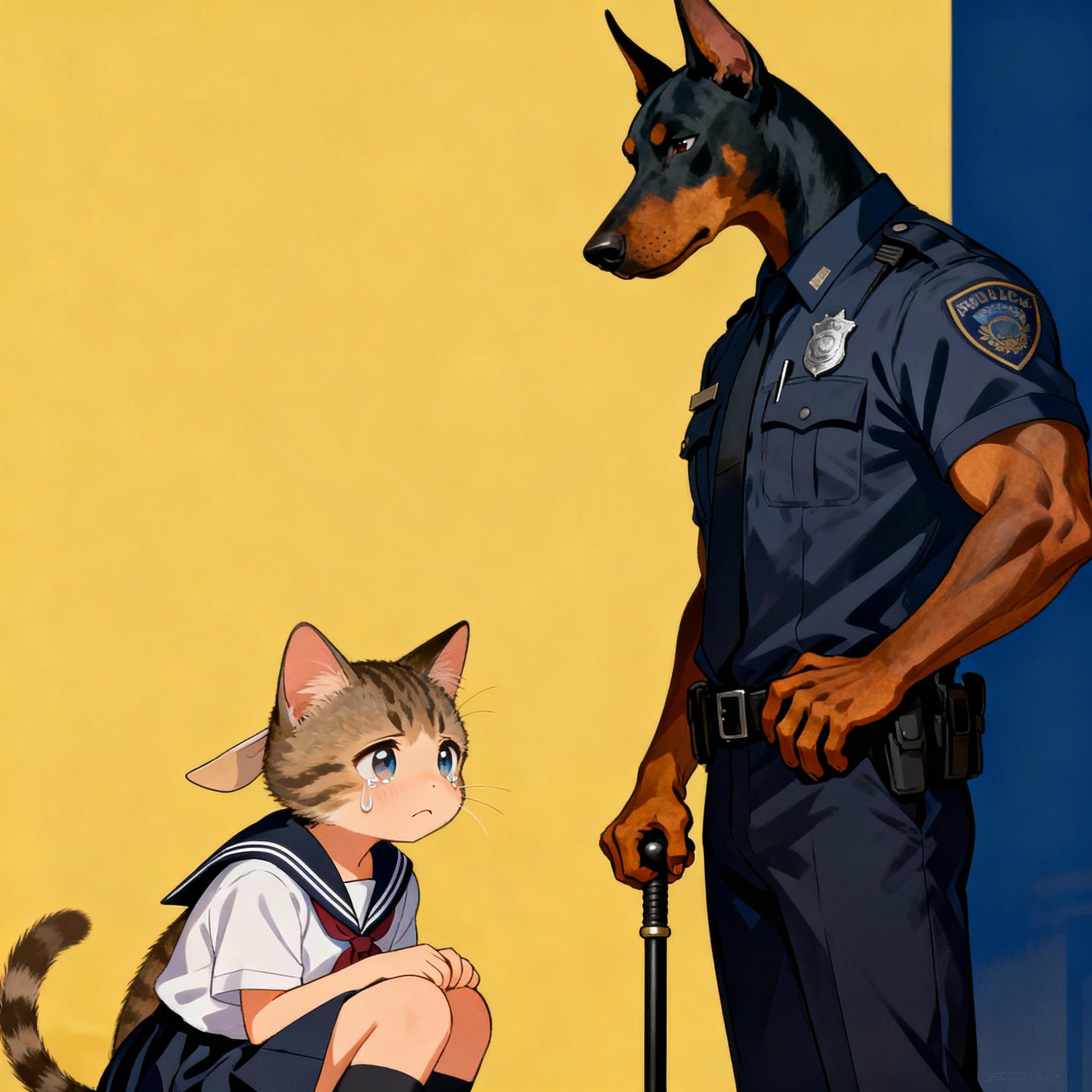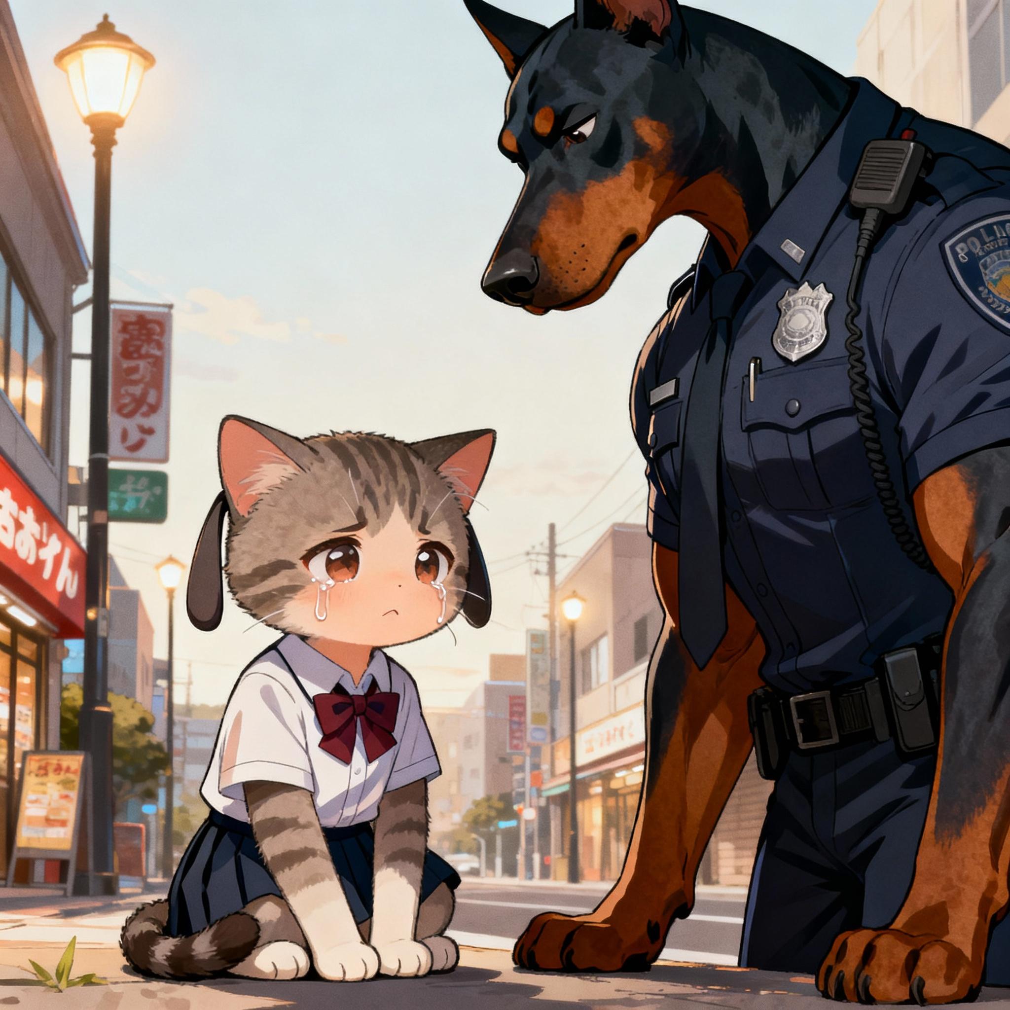 迷子の子猫ちゃんと犬のお巡りさん