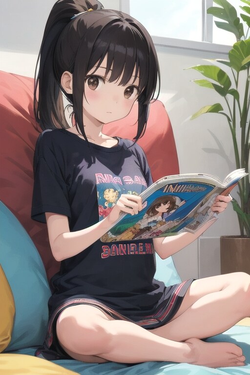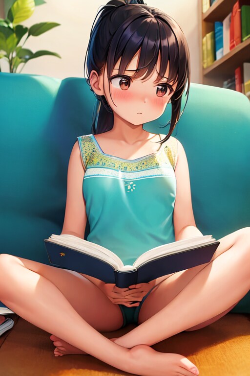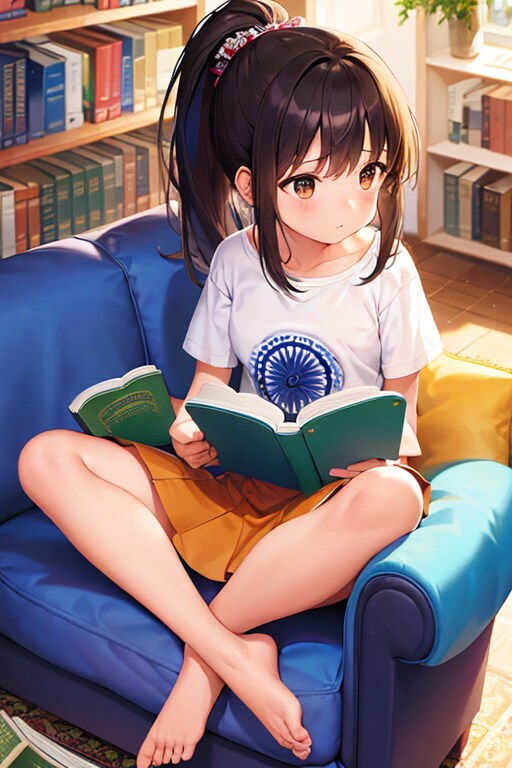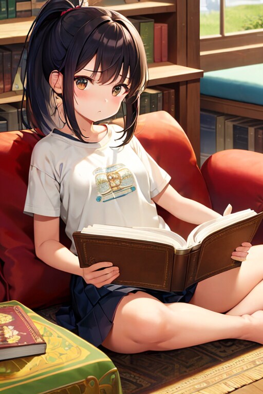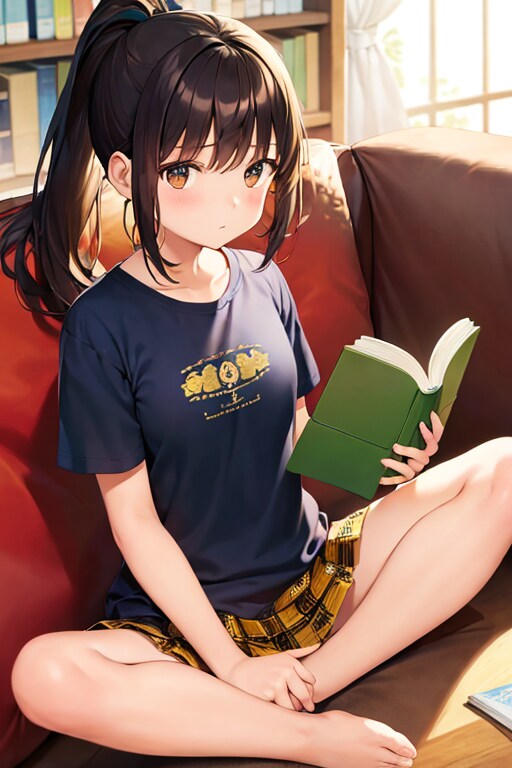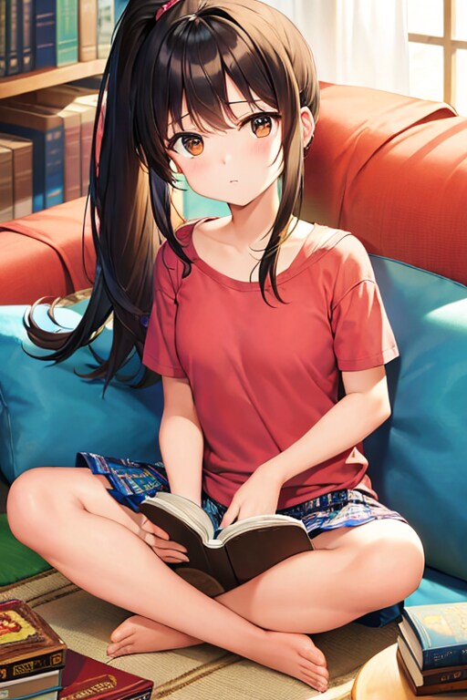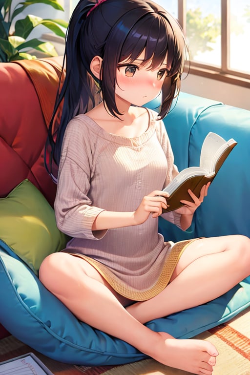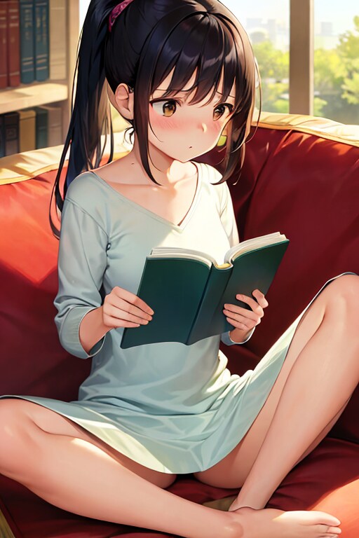 ソファでちょっとお行儀悪く本を読んでるところを表したかった。