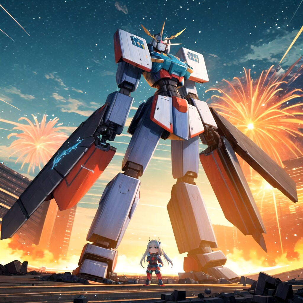 もしかして女の子と巨大ロボットを一緒に描くのは難しいですか?肩や手のひらに座らせる方法が良いのかな?