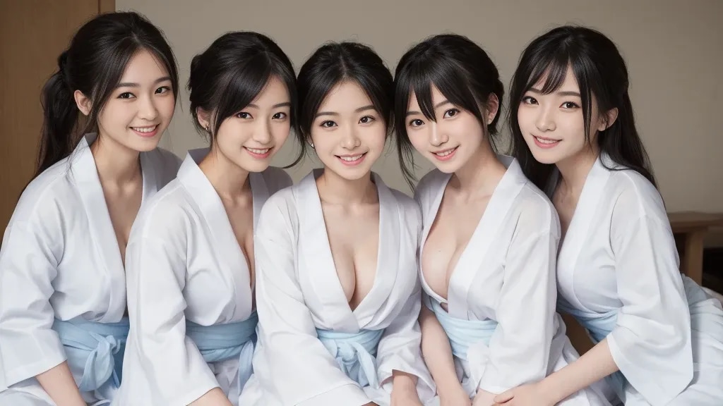 部屋全体に広がる微かな照明が、照れくさそうな笑顔を一層鮮やかに浮かび上がらせる。私を取り囲む10人以上の女子生徒たちも、静かに、しかし胸の内には湿っぽい期待を抱き、修学旅行最後の夜を、私と言う1人の雄と共に楽しむことを決めていた。