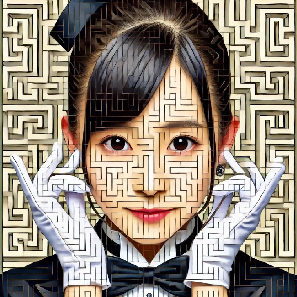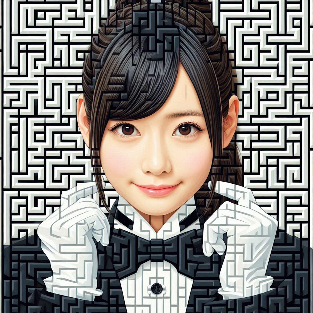 と、いうことで執事ちゃんを背景にパズルや迷路を楽しんで頂けるような画像を生成して見ました。