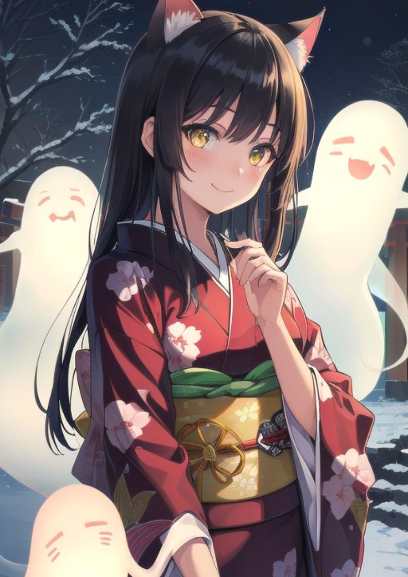 お供を従えて、人間界に遊びに来ましたにゃー。