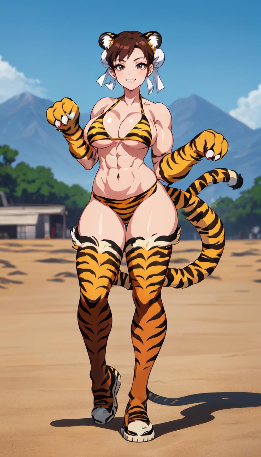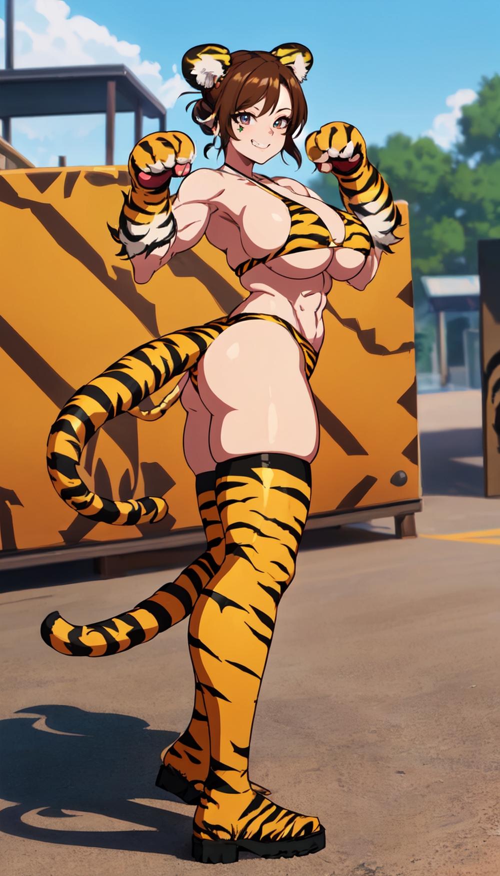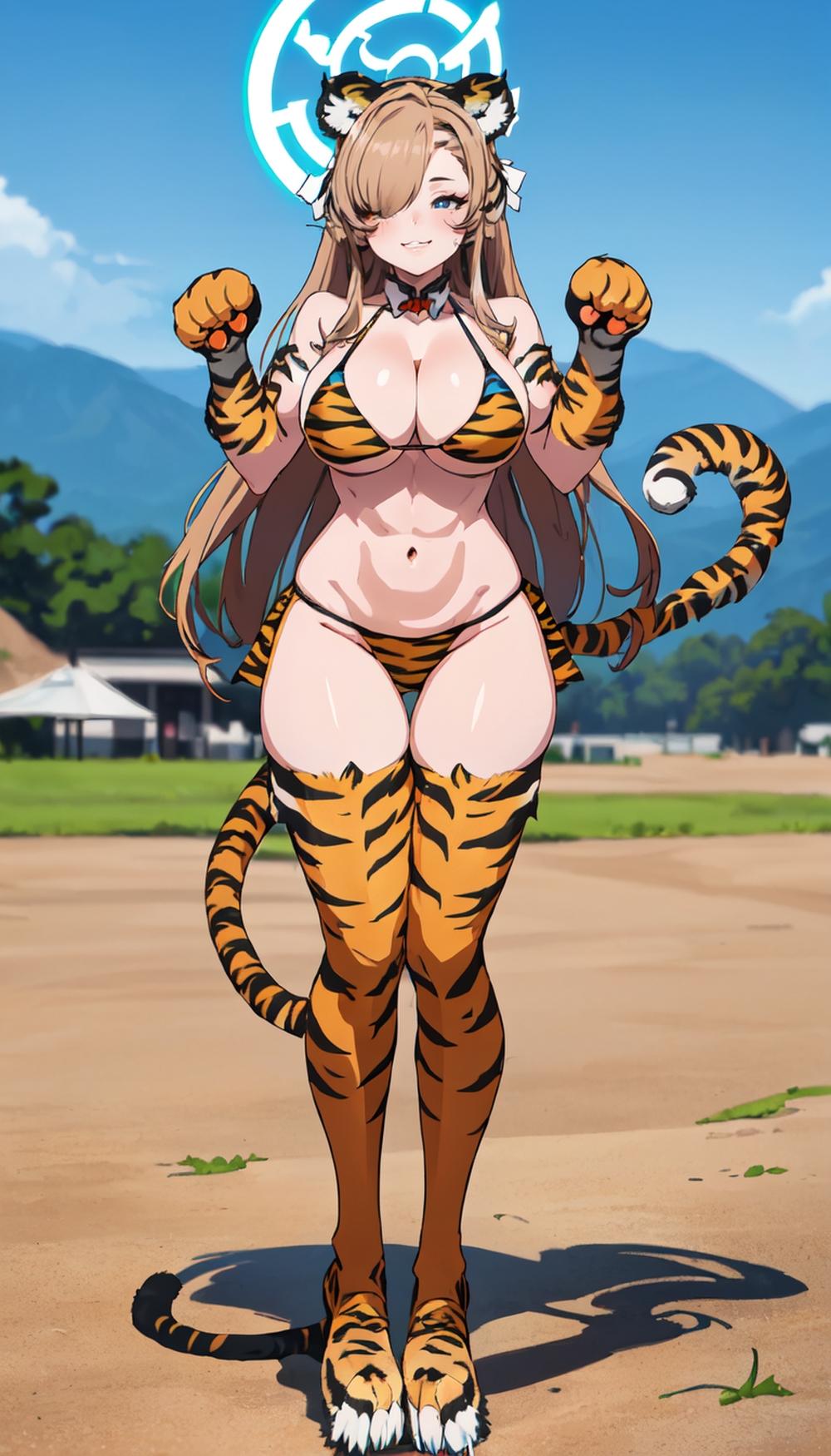 世界最大ネコ科動物モンスター娘トラ娘ビキニコスプレ&#肉球ポーズ ぷにぷに