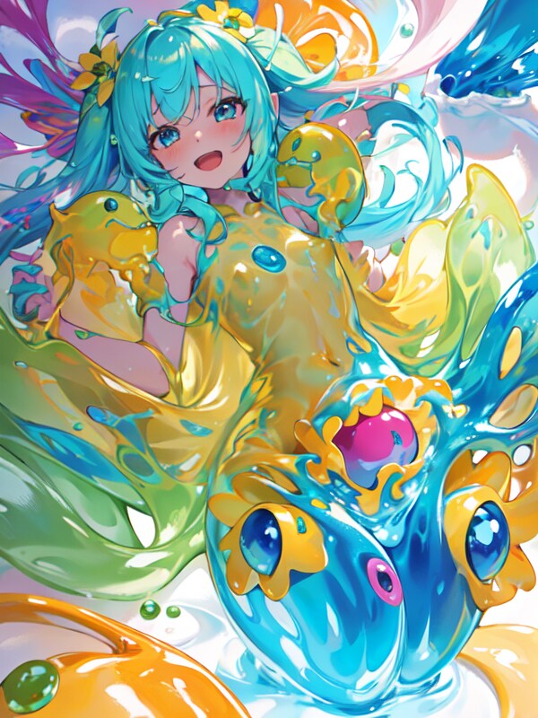 スライム娘のLoraを使えばもうちょっとドロドロした質感、透明感が出るんですけど、