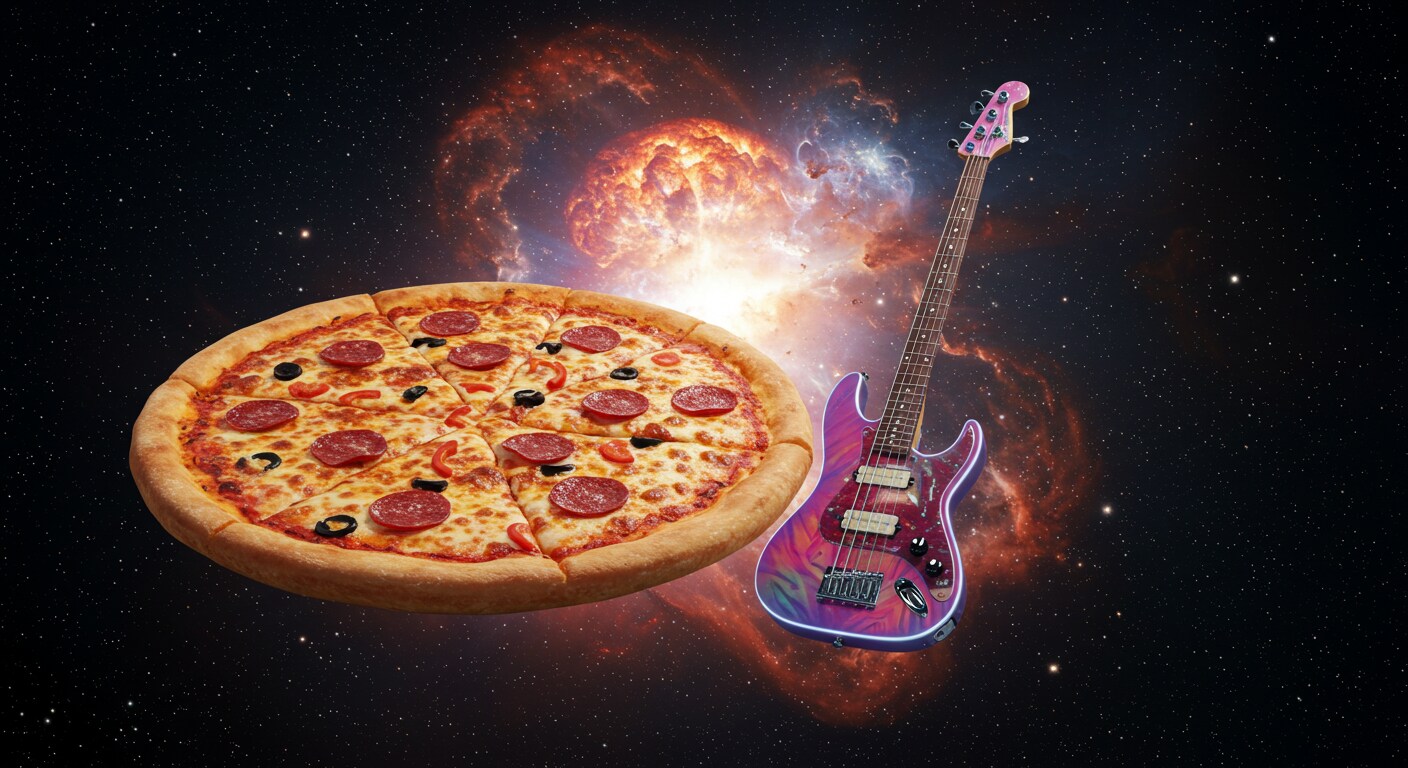 ↑こちらの、OkazuSystemObjectさんの張り紙を拝見致しまして、レッスン料のLサイズピザとレッスン用のベースを御用意致しました。