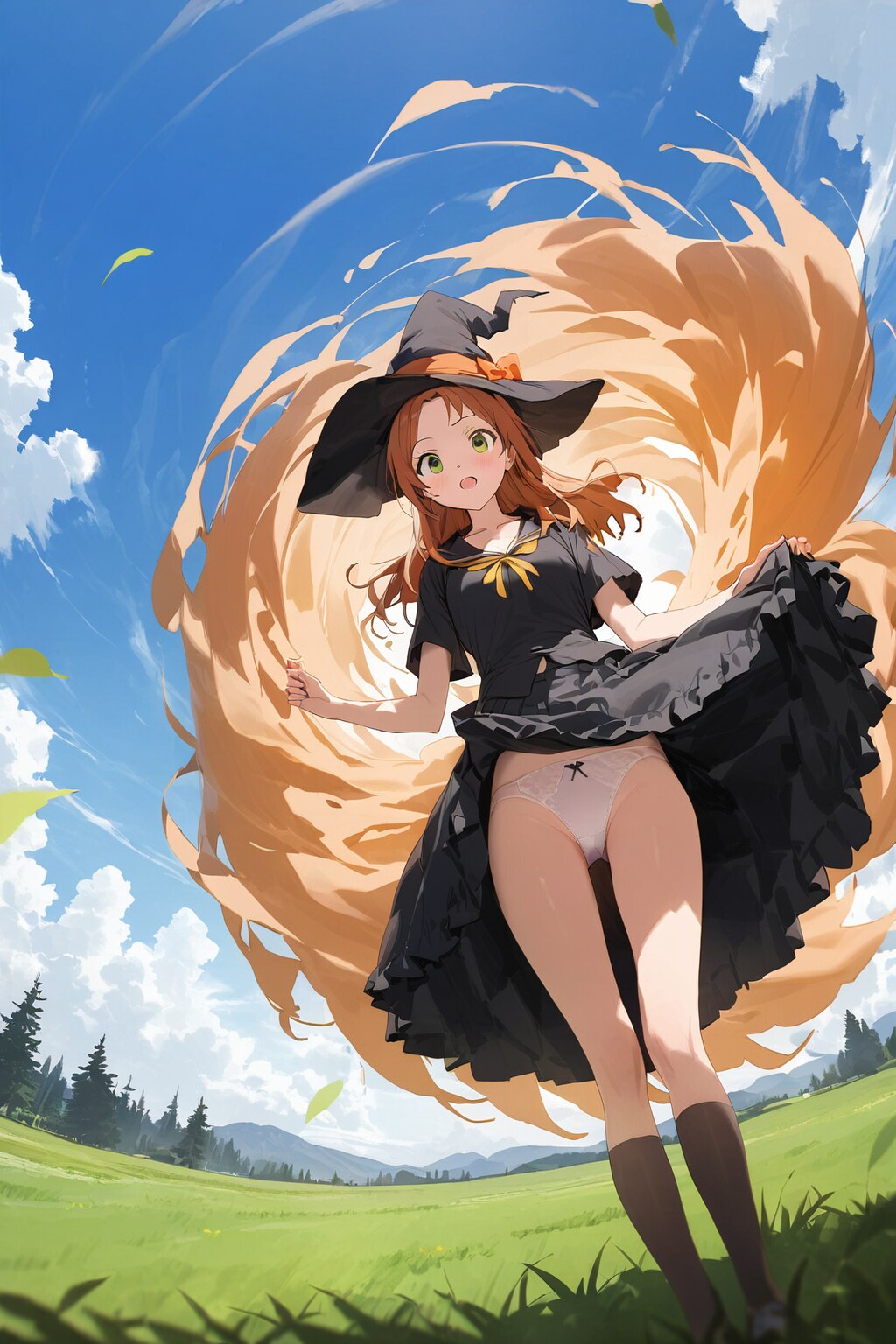 自らの風魔法でスカートがめくれますが、そんなことを気にしてたら風使いにはなれません。