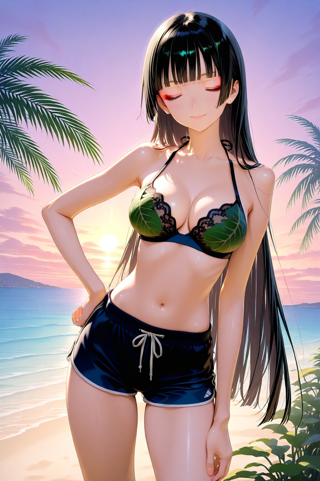 ひとまず、完成した葉っぱのブラを彼女に手渡す。