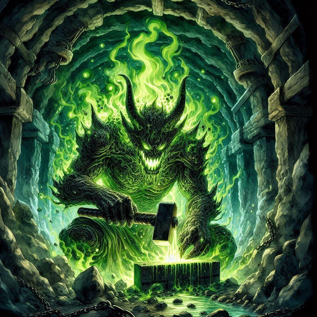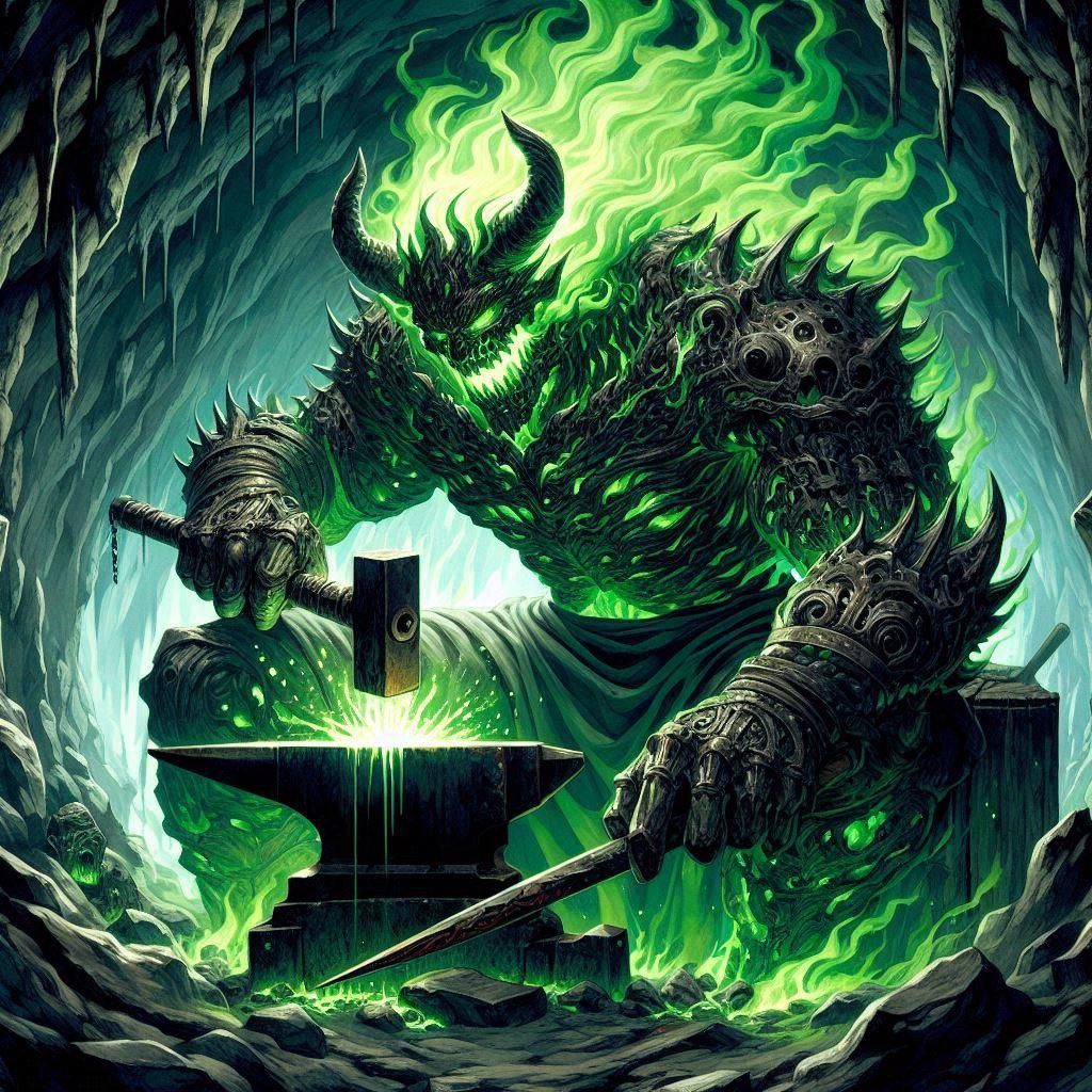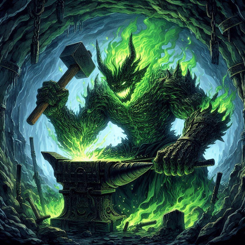 肉体は爛れ焦げ、それでも尚、只々金床を打つ…