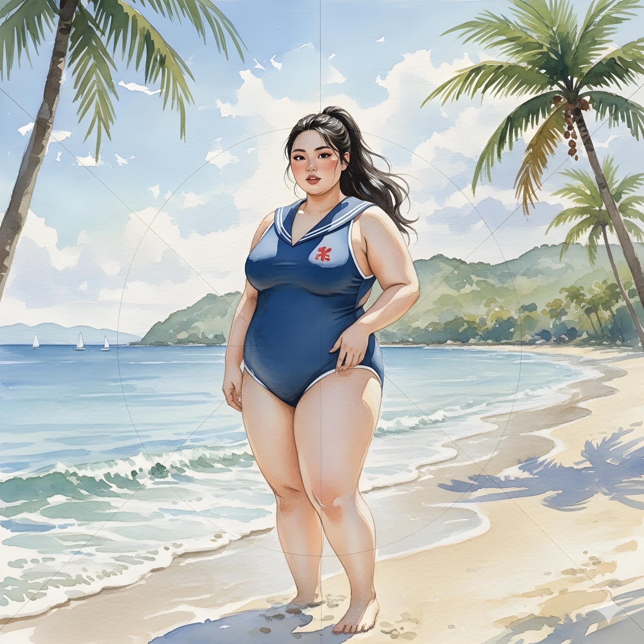 スクール水着とぽっちゃりと海