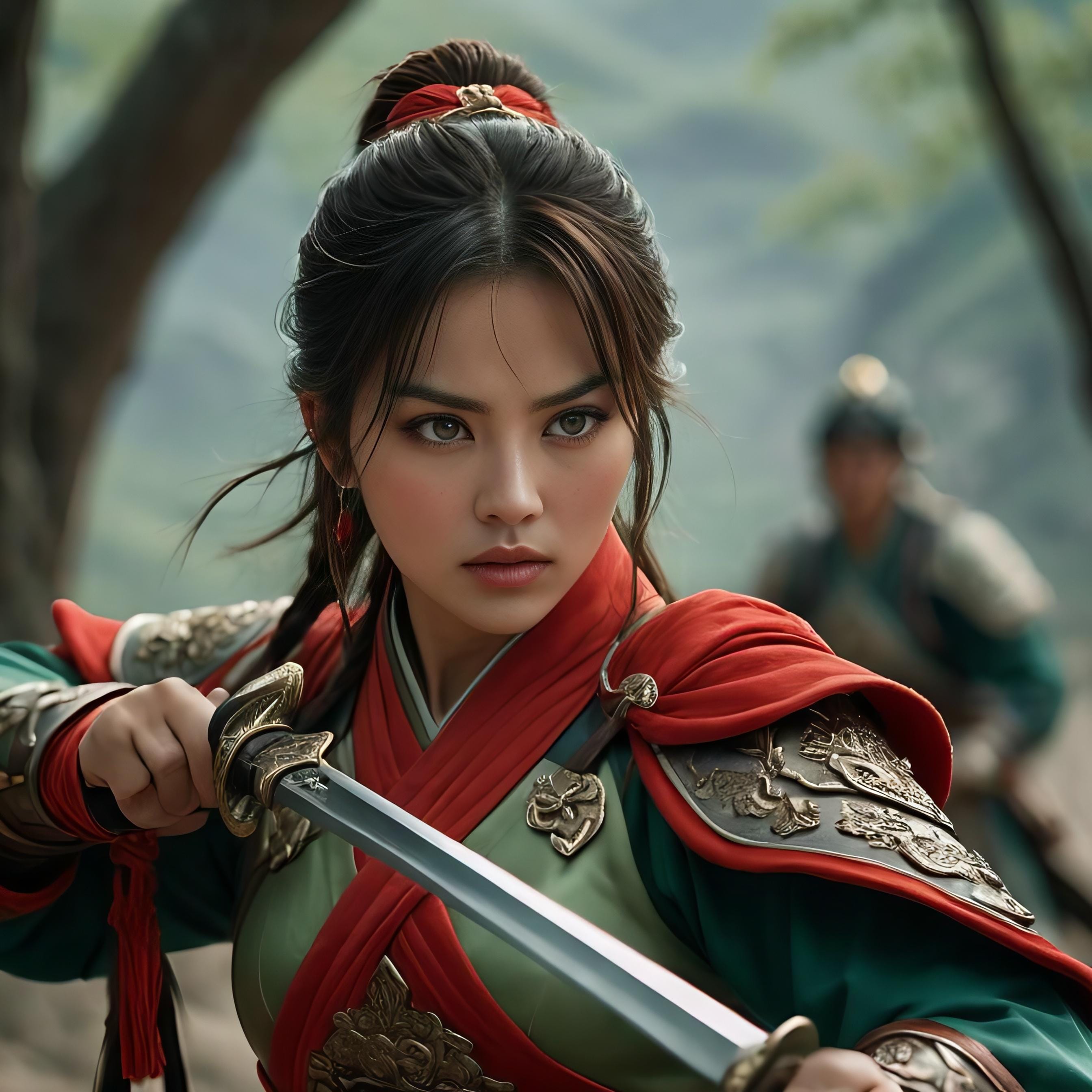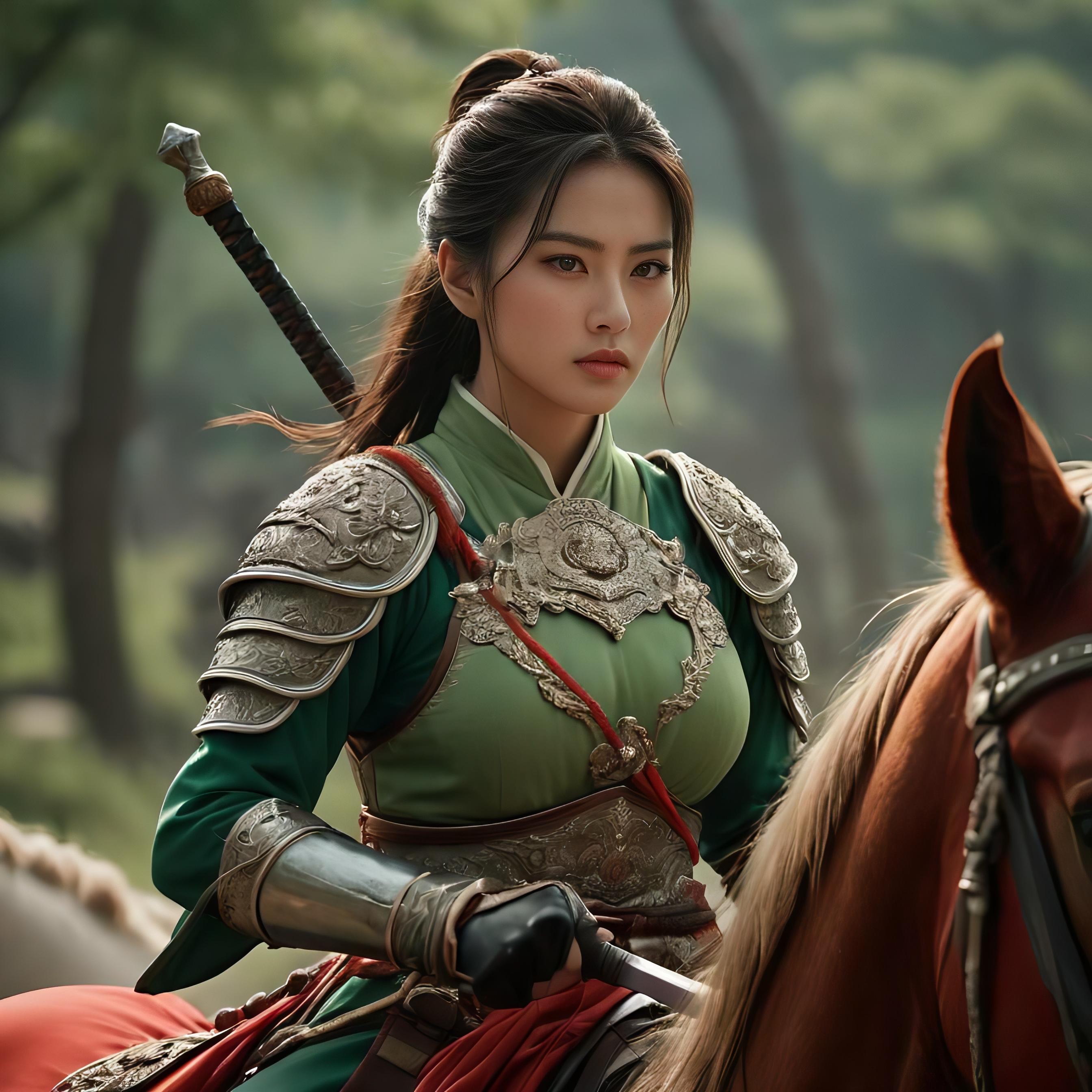 ちょっと気に入ってしまった一丈青扈三娘。リアル版も。中国と指定しないと西洋風の顔や甲冑になってしまう。