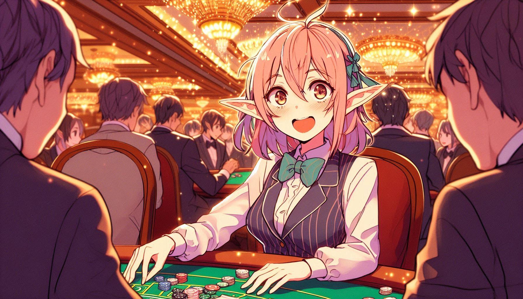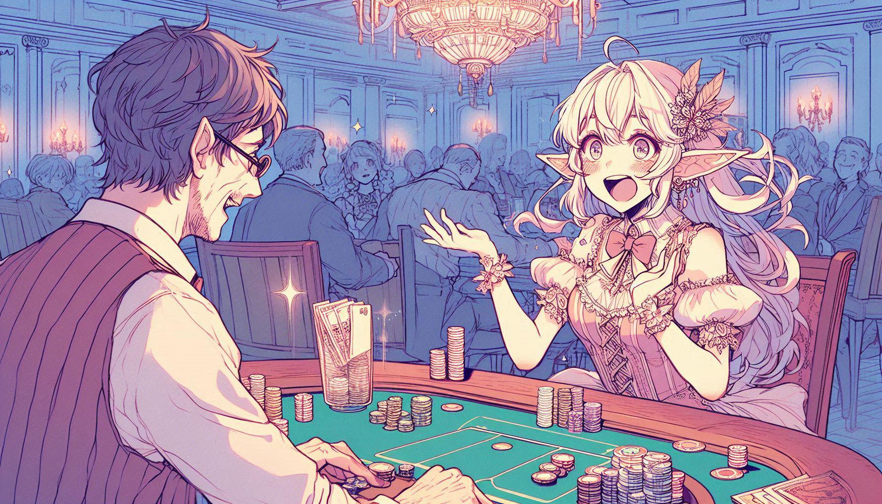 運営のすすめで、ポーカーに場を移したエルフさん。