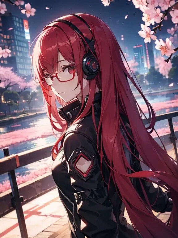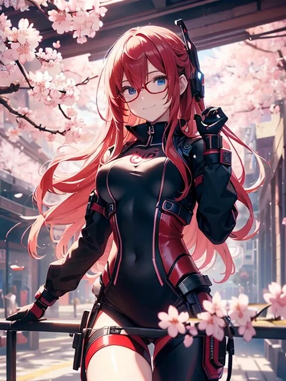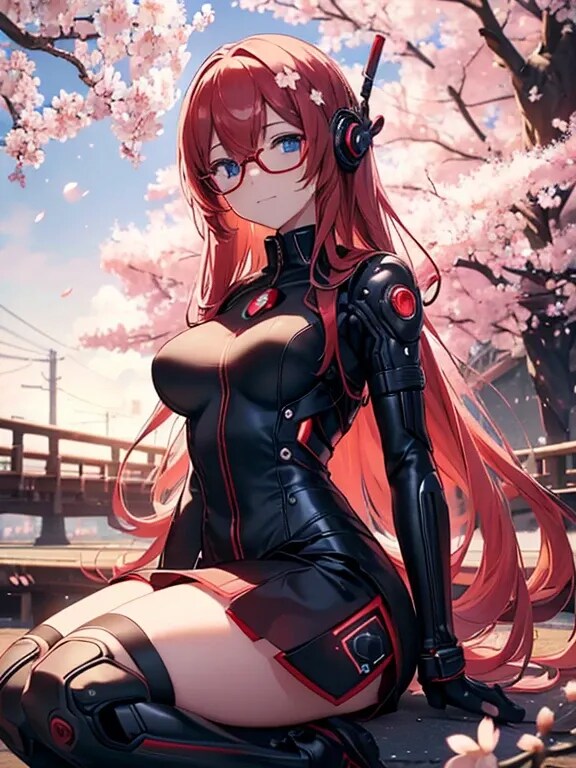 未来人眼鏡っ娘とお花見🌸みたいな感じで生成しました。