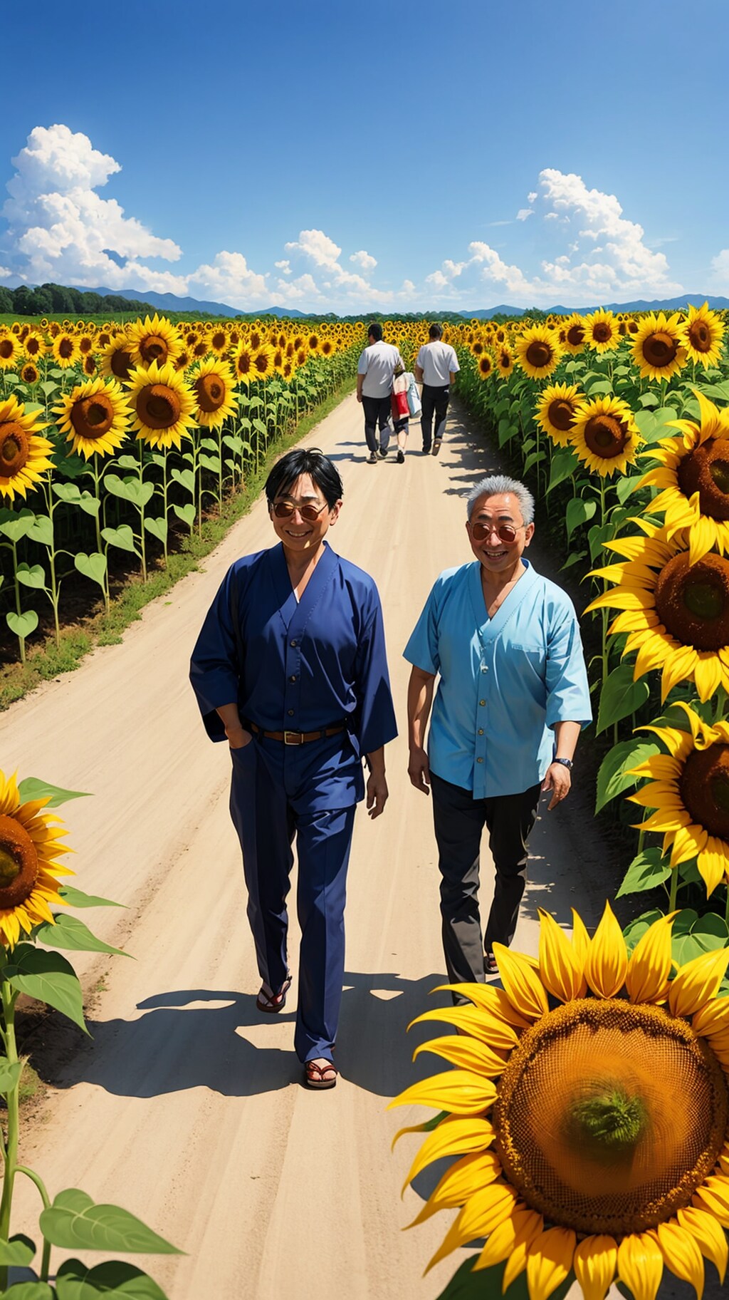 巨大なひまわり畑とキモイ酔っ払いおじさん達(誰得?な絵)