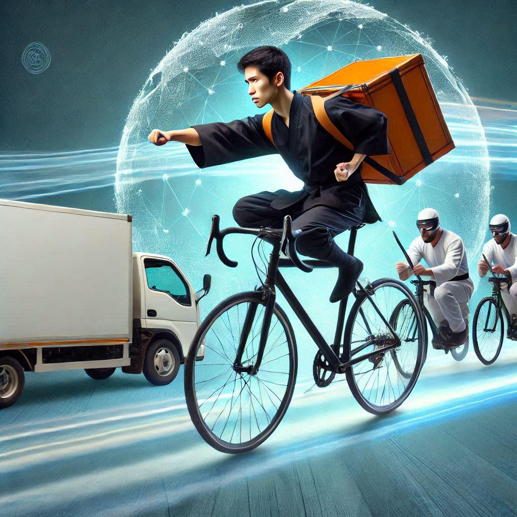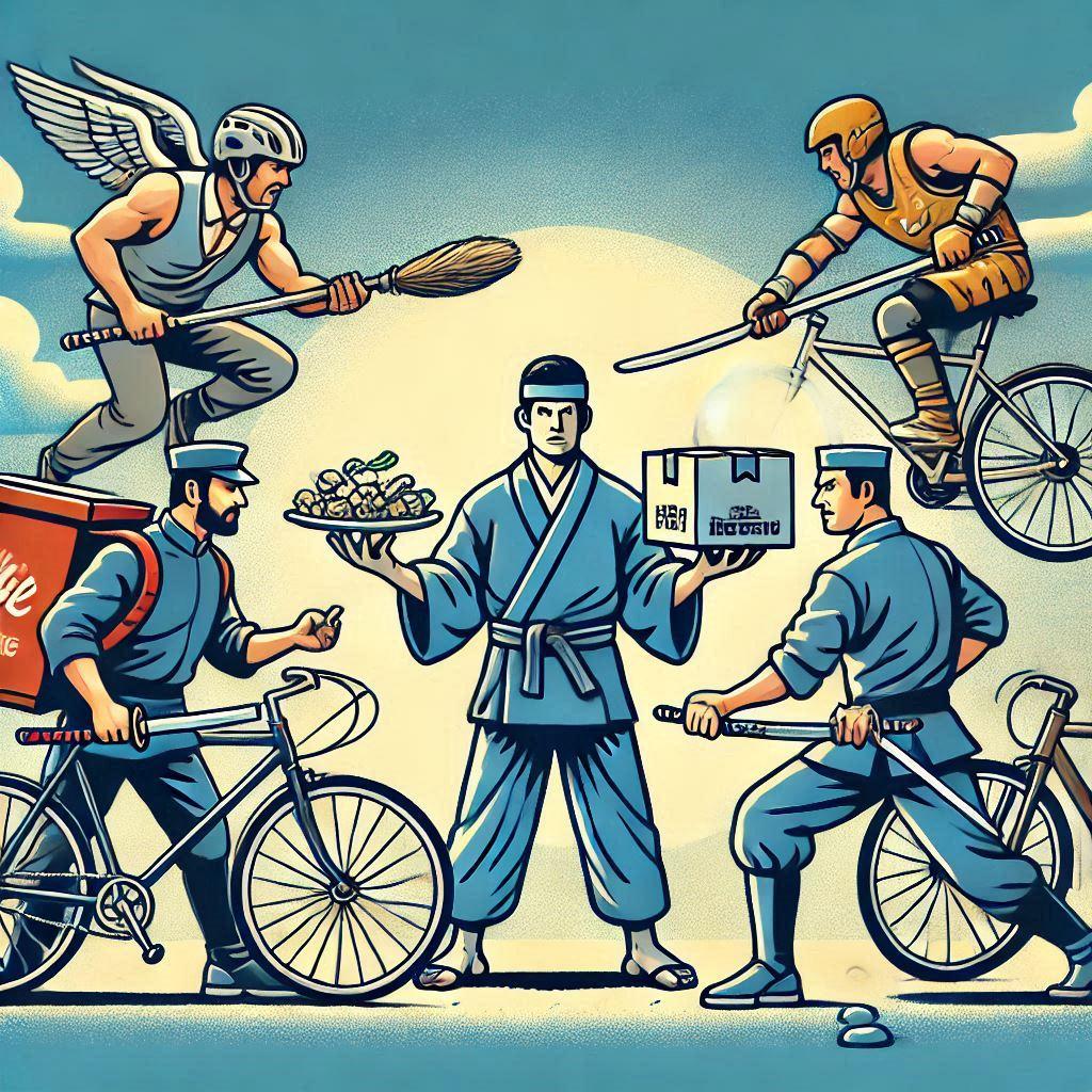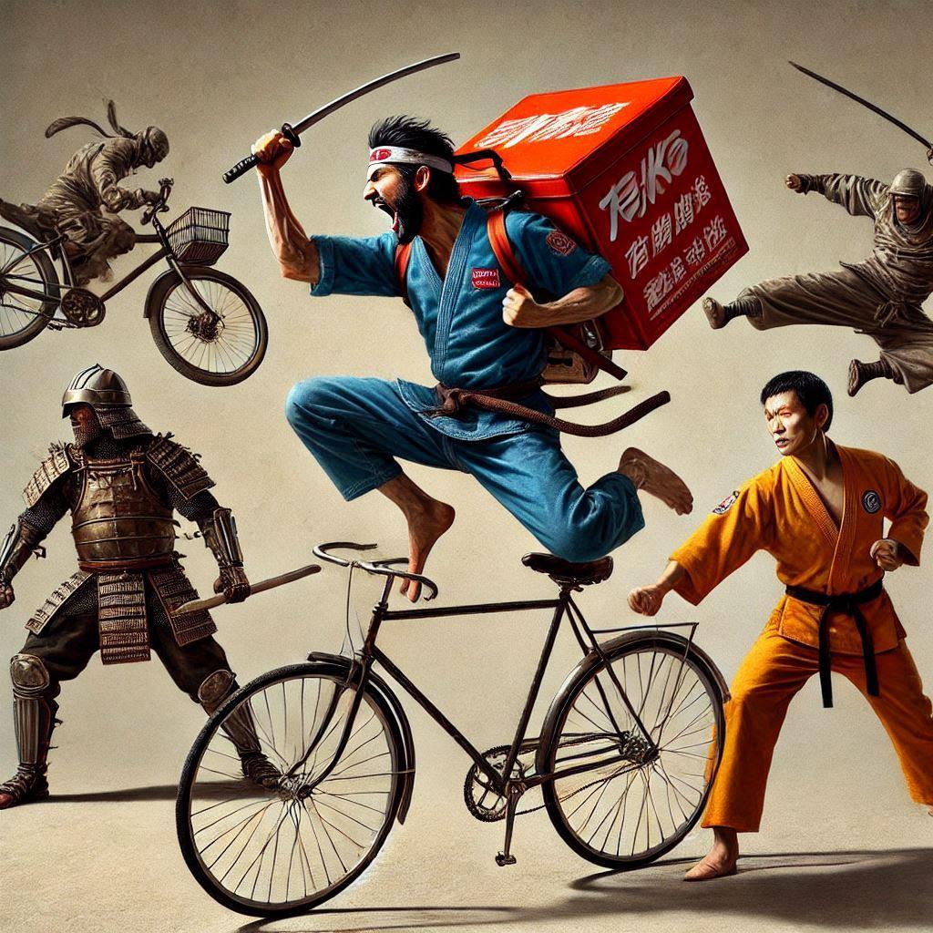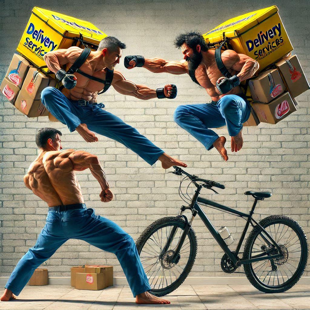 それは・・・ デリバリーサービスと自転車を組み合わせた全く新しい格闘技である。