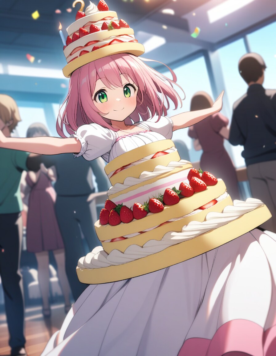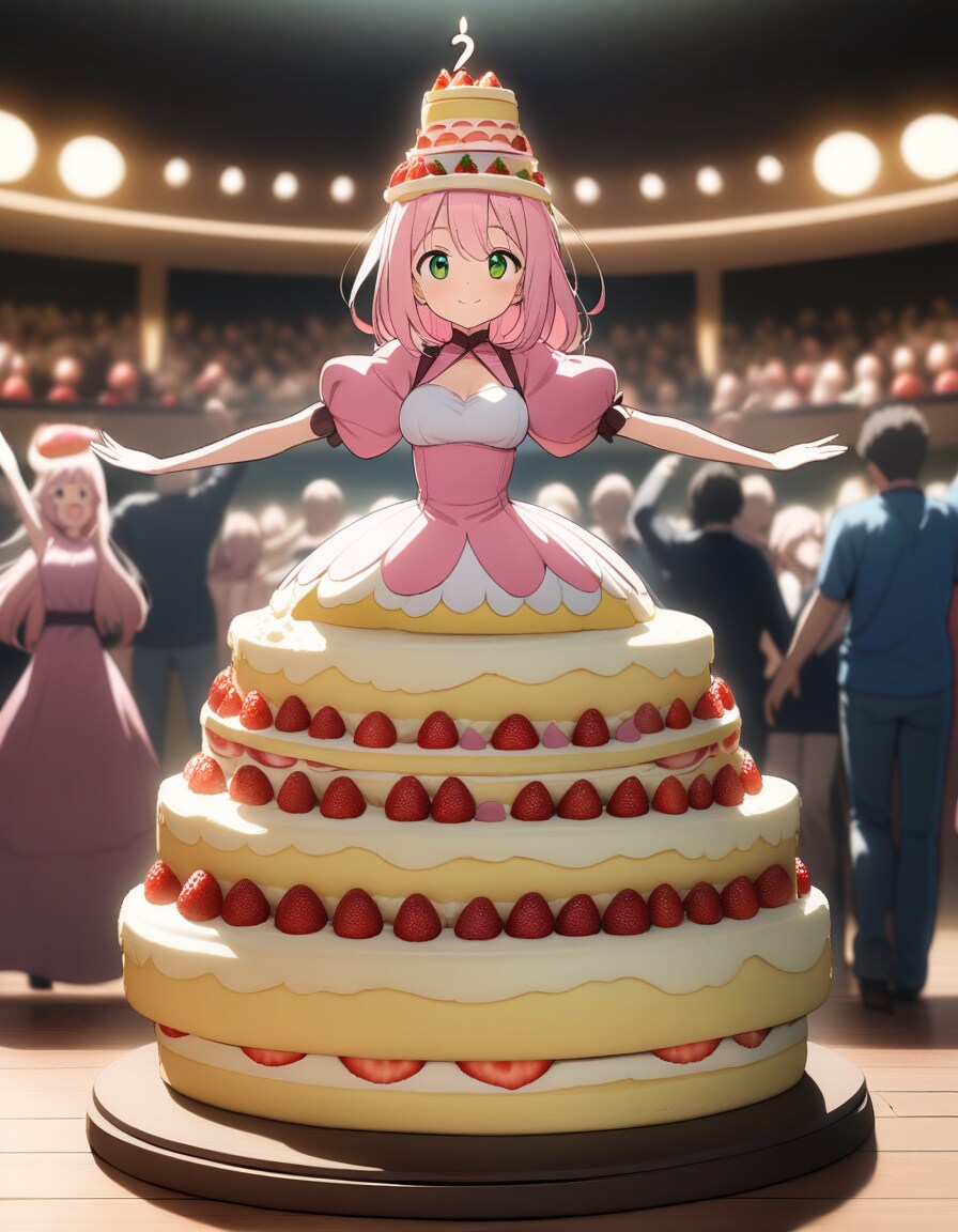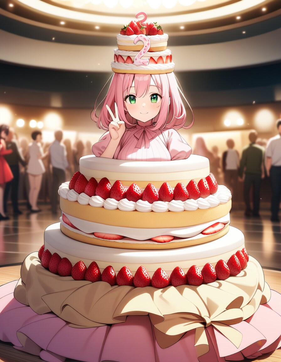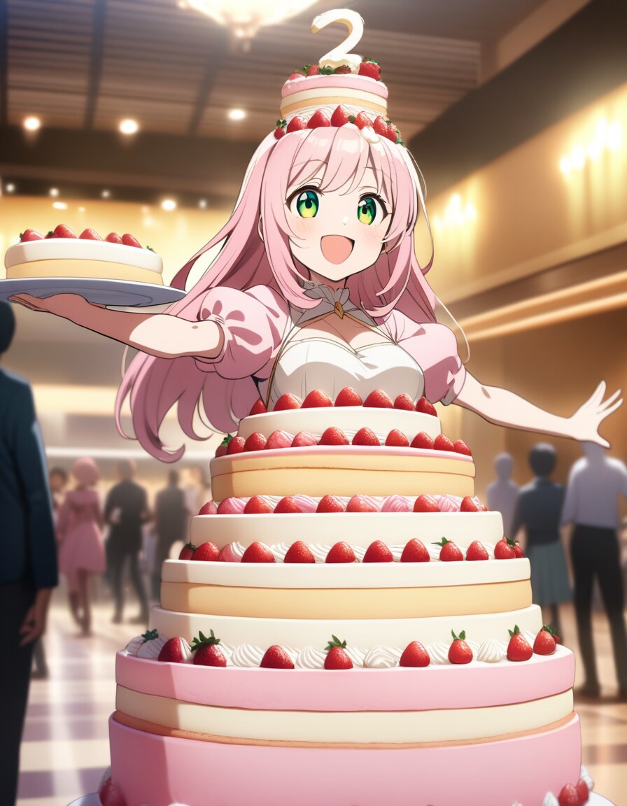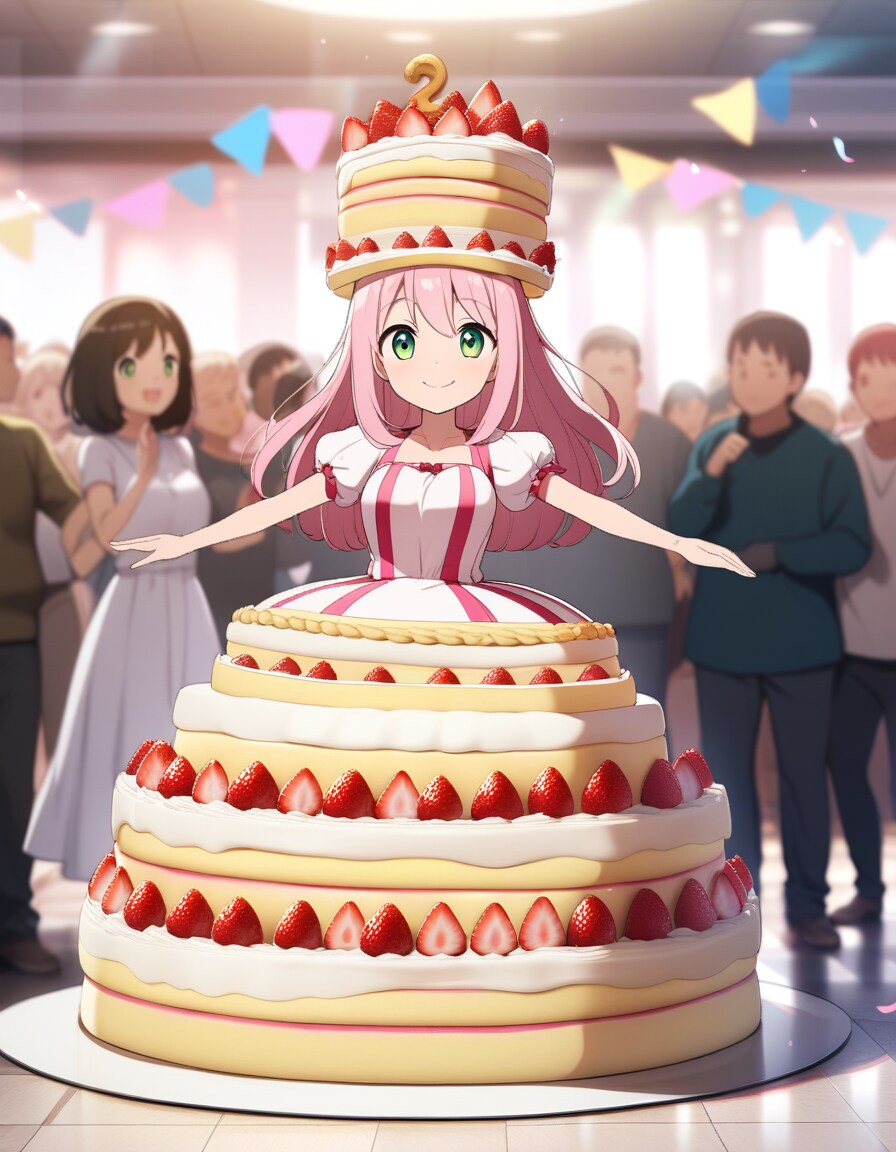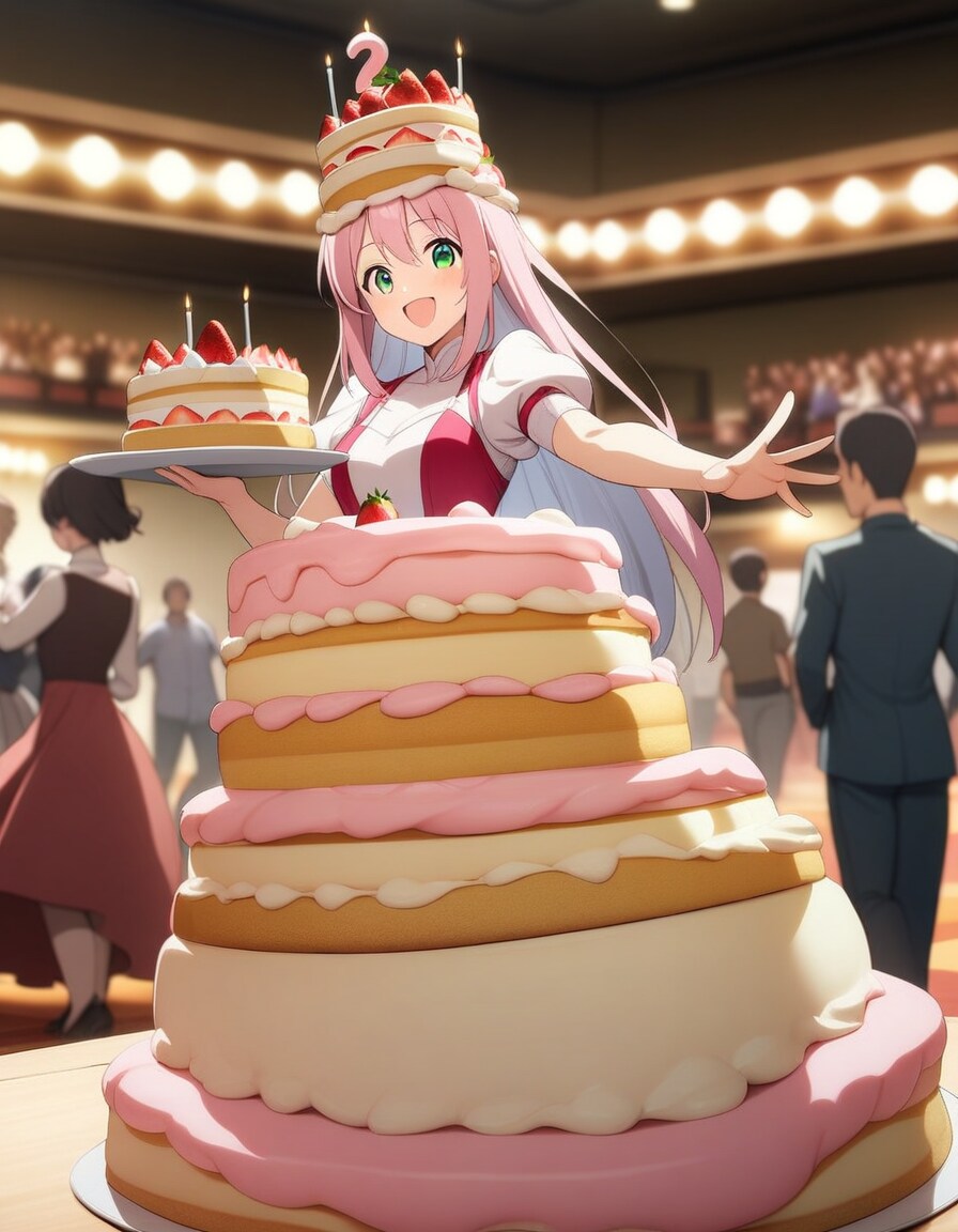 砂漠やら森やらじゃなくて、ケーキらしい祝宴の席にやっと呼んでもらえたケーキちゃん。