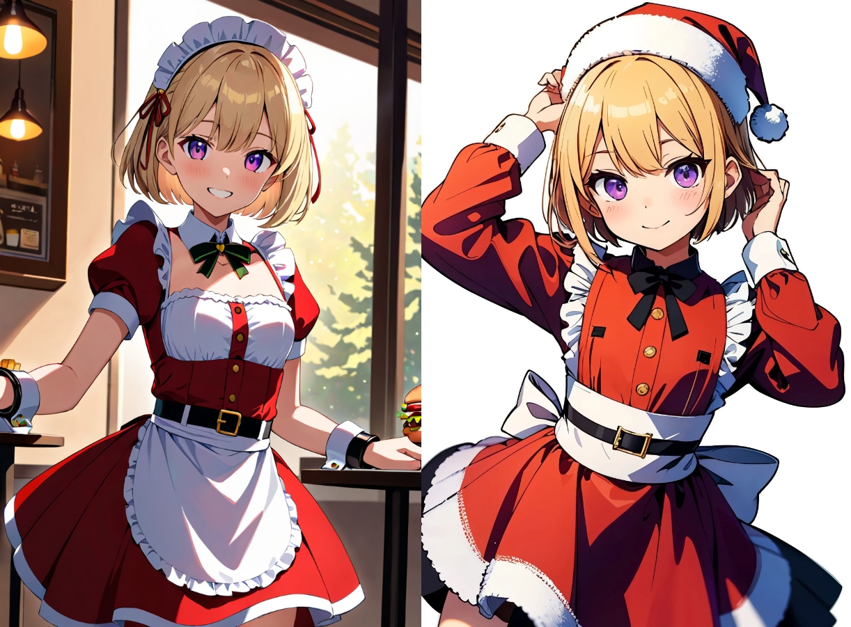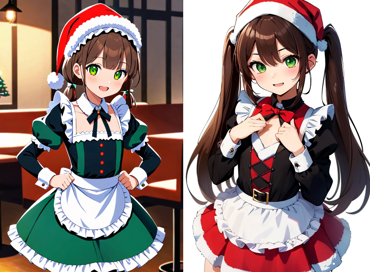 [2分割の右側]maid:1.3,santa,headdress,cuffs,