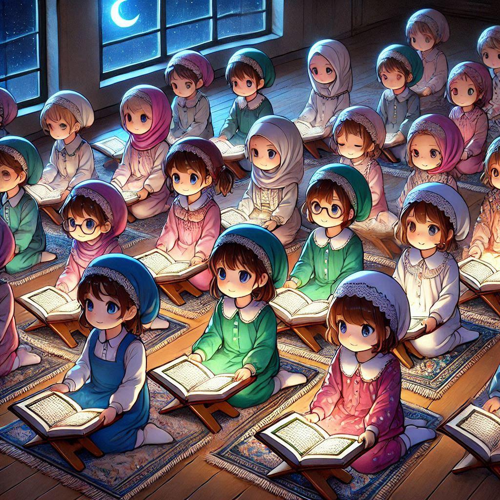 [空欄答え]夜(通し保育)園でコー(ランを読)む女(の子)