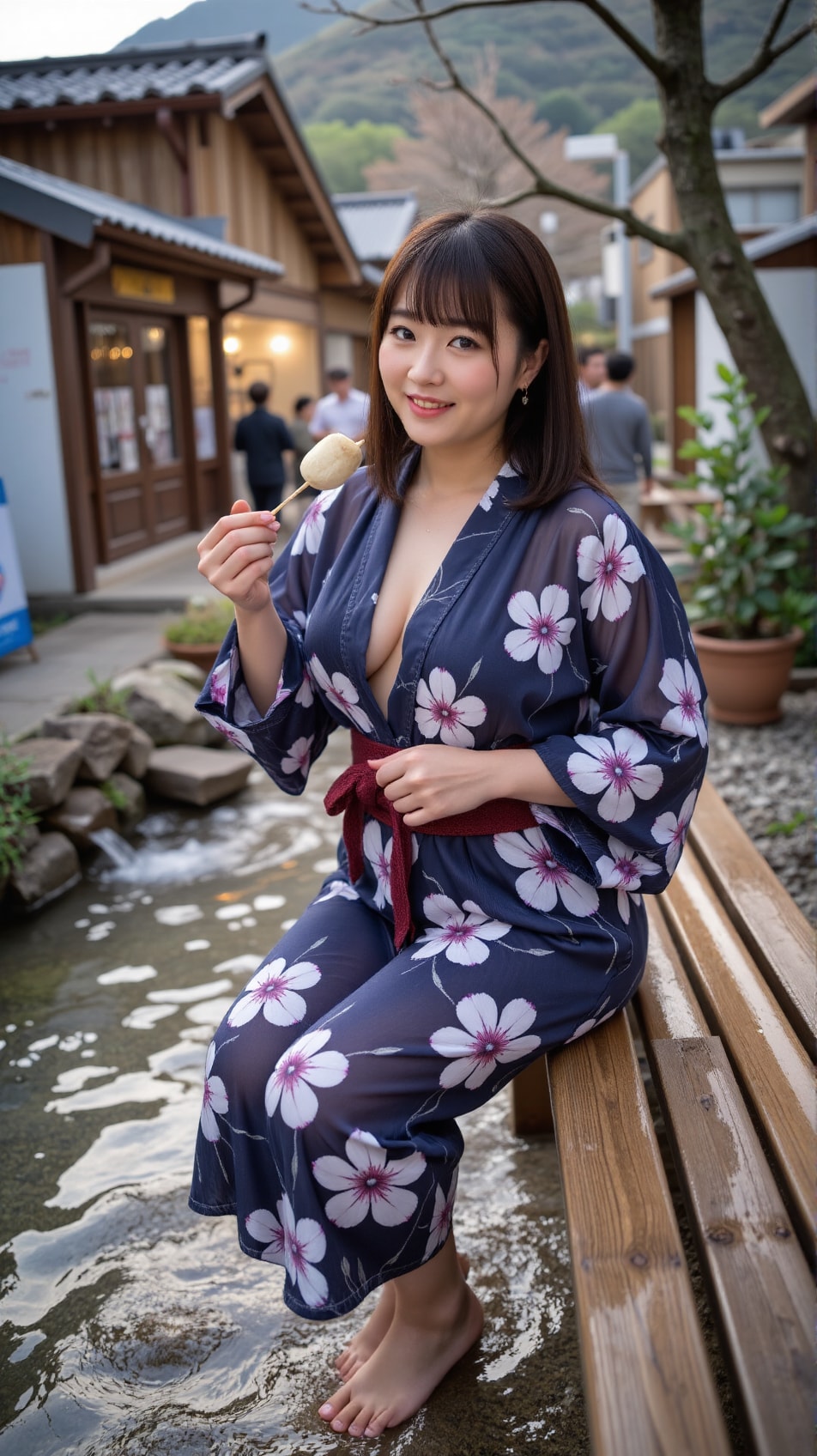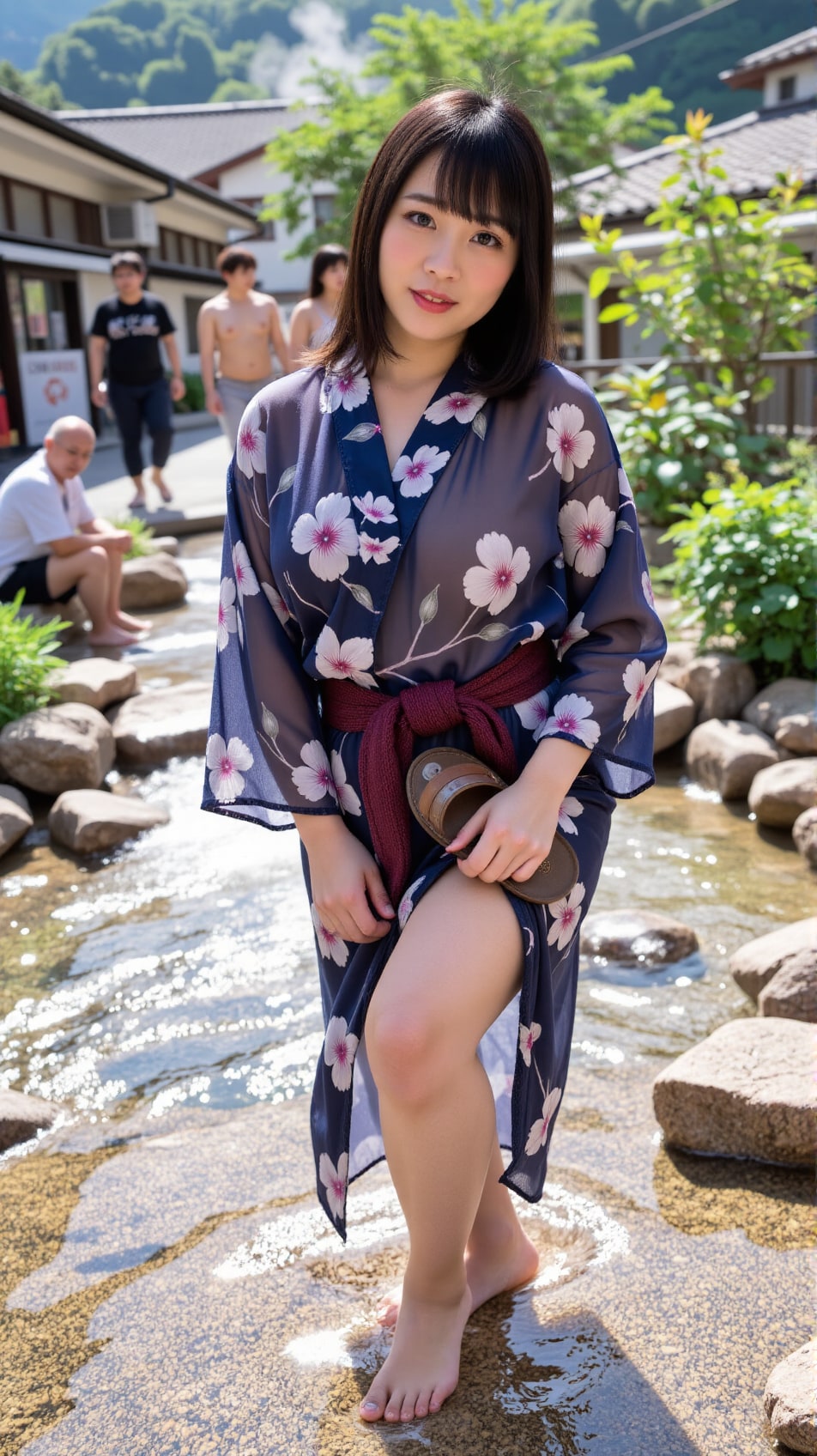 わぁ、気持ちいいw 川の流れが足湯になってます。この浴衣濡れたらどうなるんだろう?