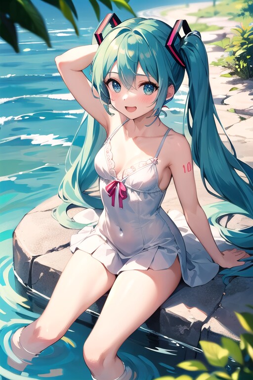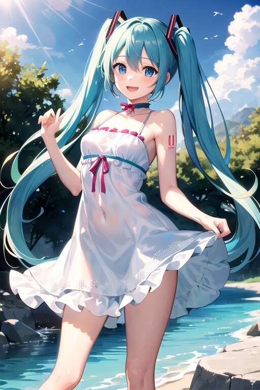 こらこら、あまりはしゃぐとびしょ濡れになるよミクさん。