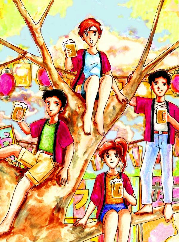 [2枚] 夏まつりはビールをもって【手描きCGをi2iでAIイラストにしてみた】