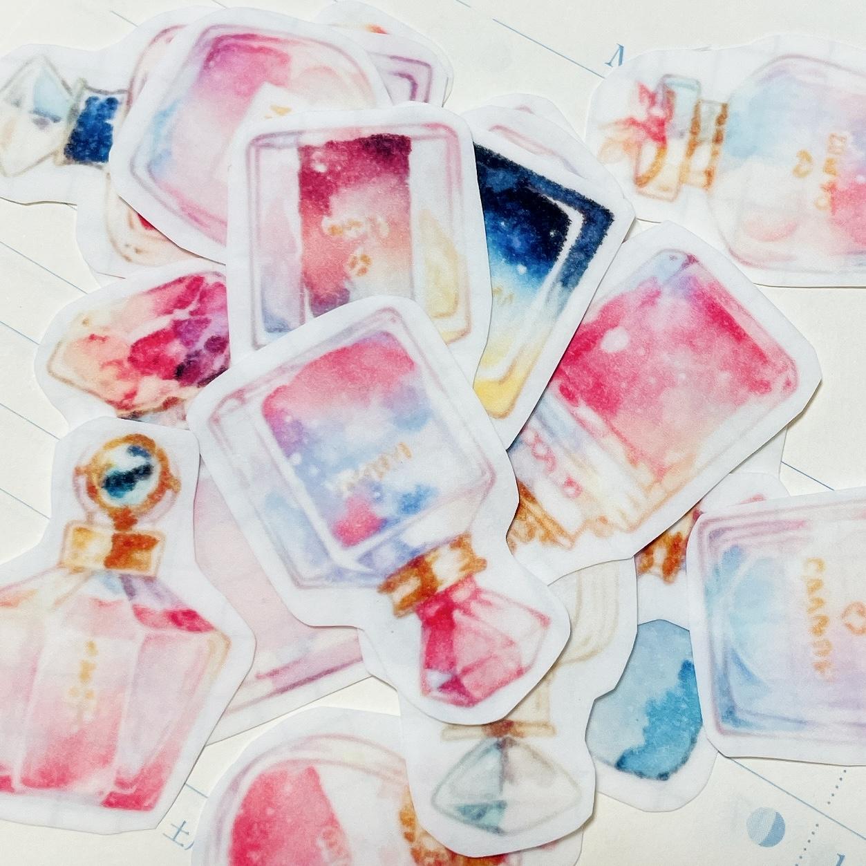 自分だったらAIイラストで何作るかな〜と考えて、折角なら使える物が作れたら楽しいだろうと思いマスキングテープ素材のフレークシールを作りました。