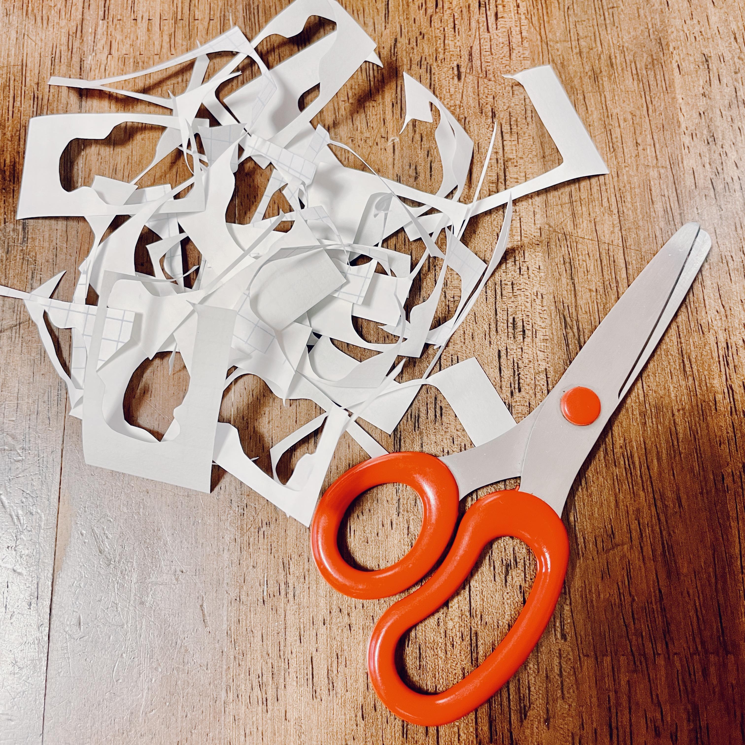自宅のプリンターでシール用紙に印刷して地道にハサミで切りました。