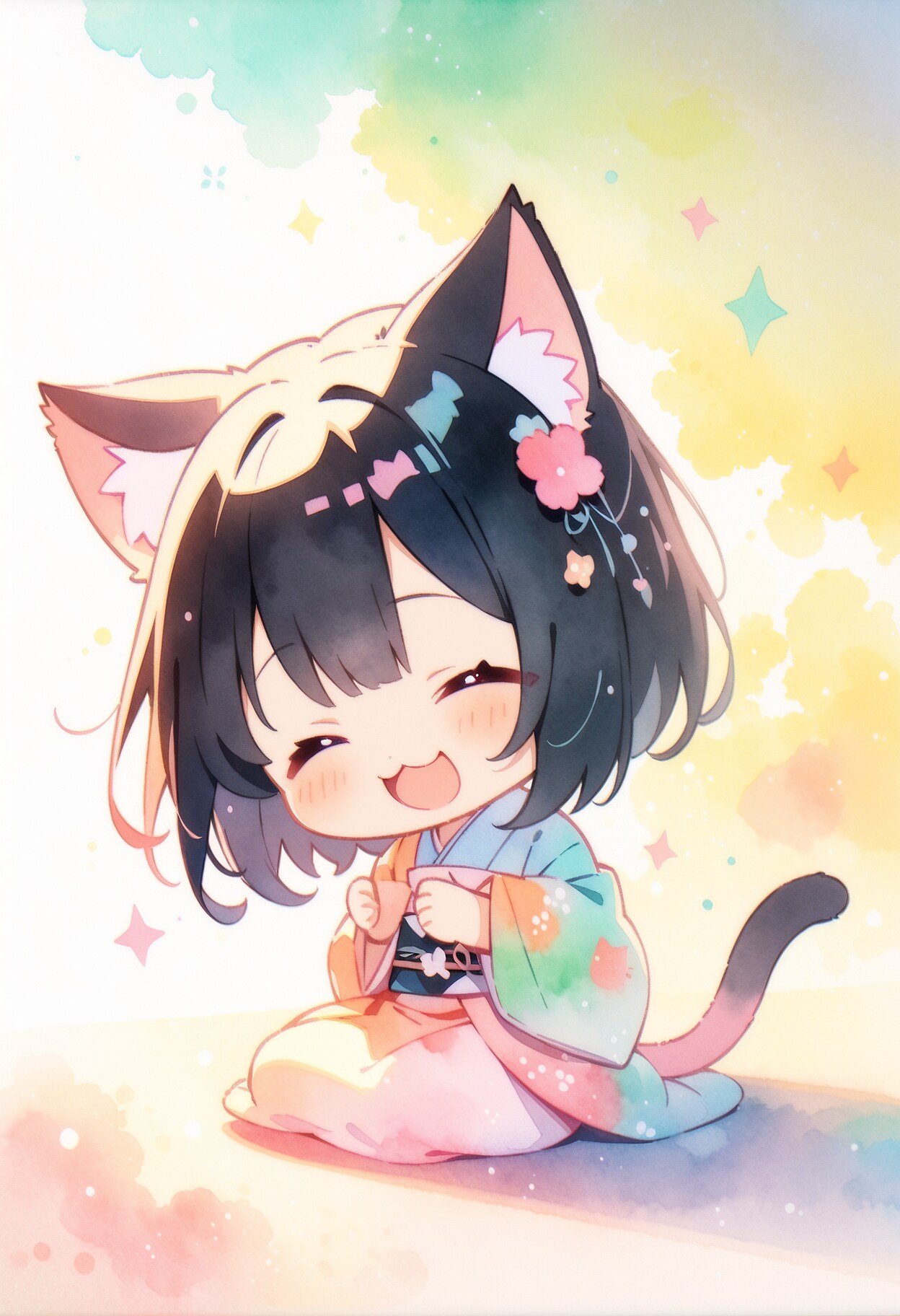 着物を着た黒髪チビ猫耳