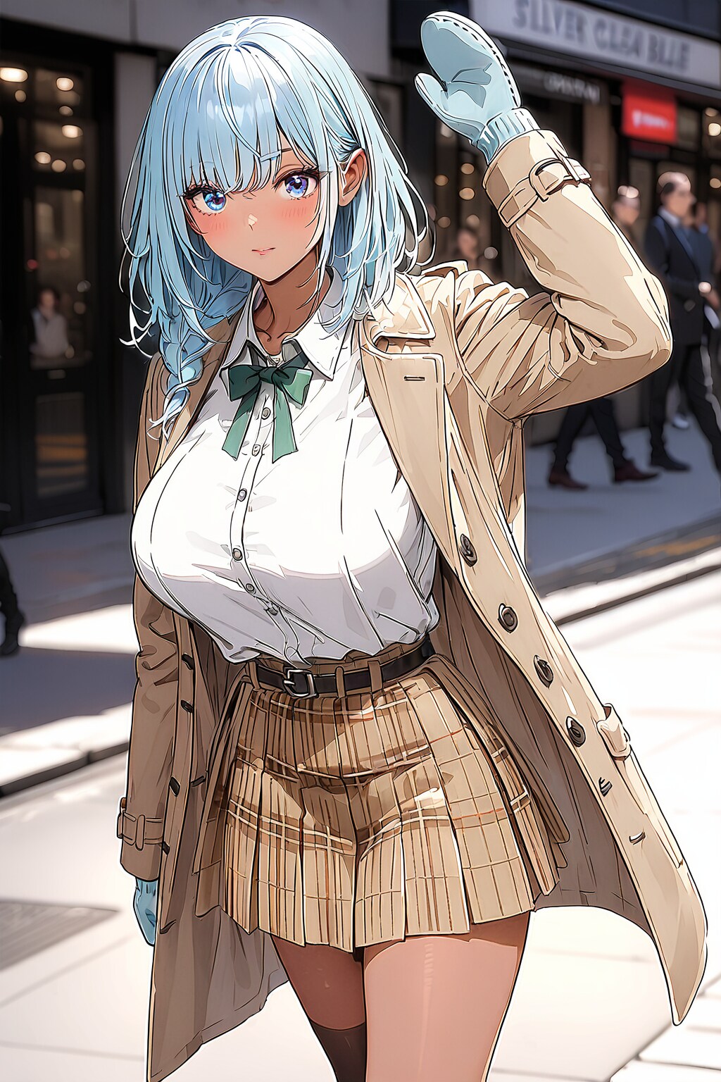 20251116【5枚】チェックのブラウスとサロペットスカートの女性