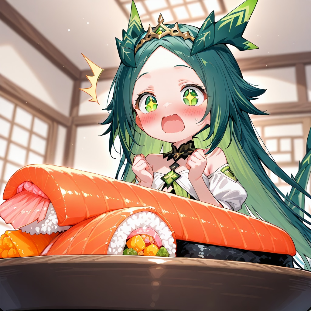 驚くワイバーンちゃんと謎の寿司っぽい料理w