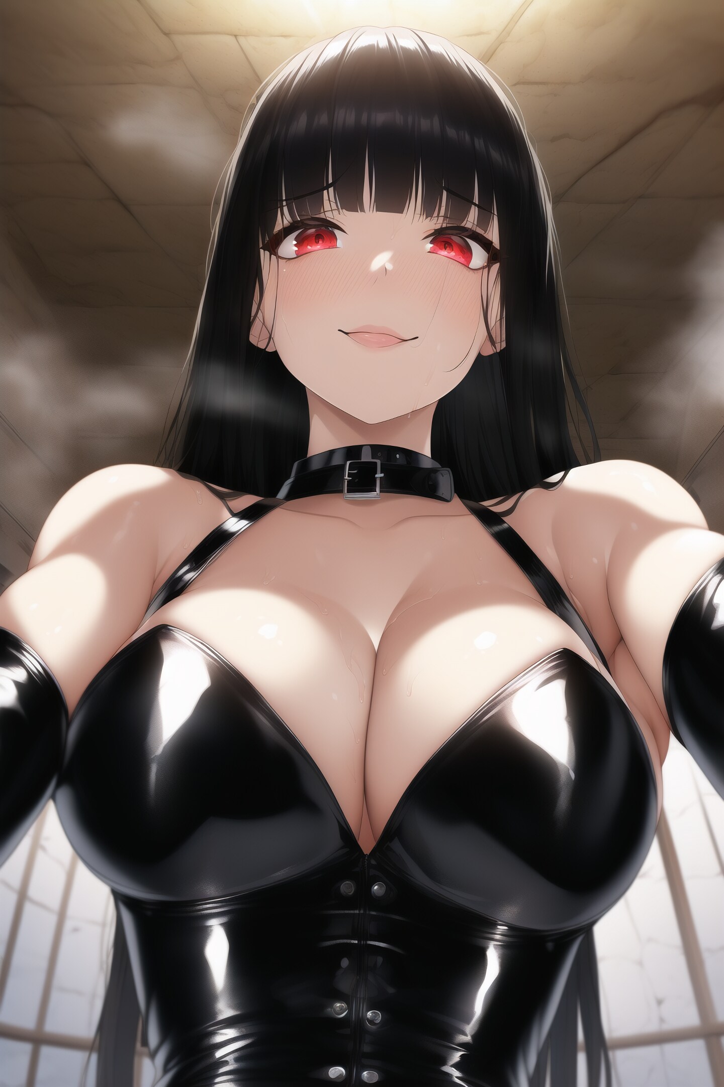 黒髪ぱっつんロングのボンデージ女王様に見下されたいNovelAI