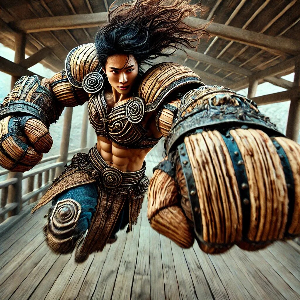木神具を扱う者には厳しい修行が課せられる。まず、千回の拳撃を素手で行い、拳を鍛え上げた後、木神具を装着し、さらに万回の拳撃を繰り返す。この修行を乗り越えた者のみが、木神具を真に使いこなすことができるのだ。特に、**「木神具奥義・千掌崩山拳(せんしょうほうざんけん)」**は、連続千打を一瞬で繰り出し、山すらも崩すと伝えられる必殺技である。