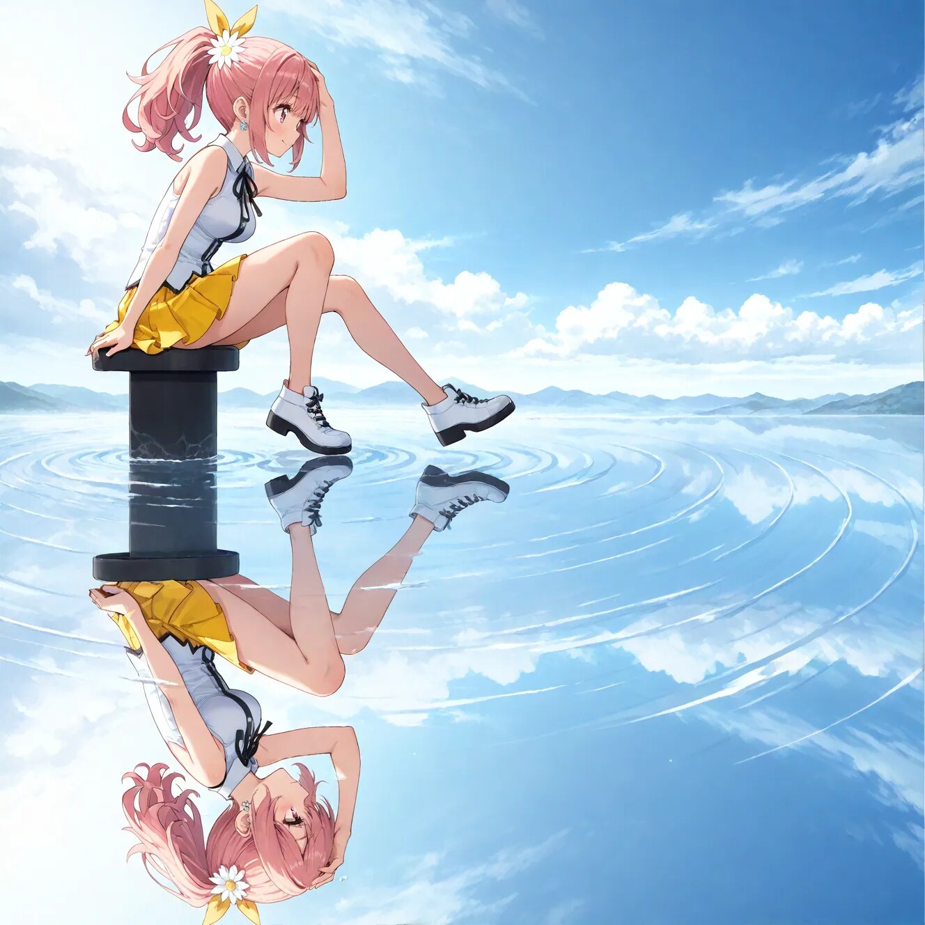 ①反射する人物はプロンプトで出ますが、正方形かつ人物左側とするため、i2iにしています。